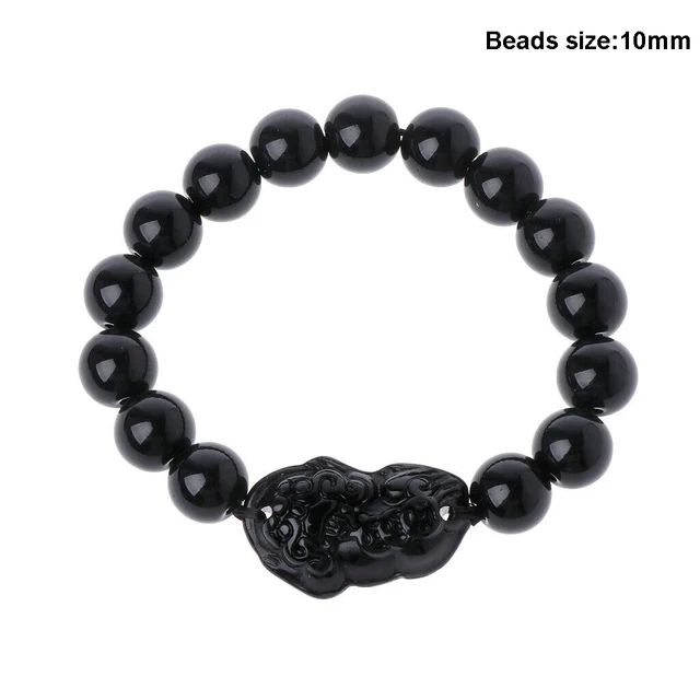 • Natural Stone Bracelet Men Women Chinese Feng Shui Pi Xiu Obsidian Wristband Gold Wealth and Good Luck Women Bracelets