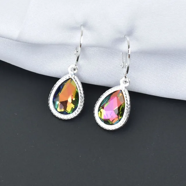 • Geometric Crystal Water Drop Earrings For Women Silver Color Red Blue Jewelry Bridal Gift Boucle D'Oreille Femme