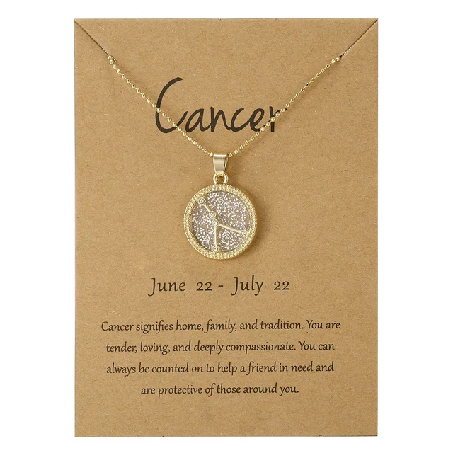 12 Zodiac Constellations Necklace Geometric Round Pendant Gold Silver Color Chain Necklace Unisex Friendship Jewelry Lover Gifts