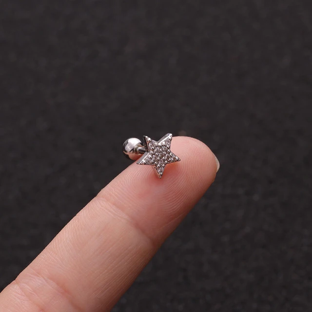 Star Heart Cross Flower Crown Bar Cartilage Piercing Stud Helix Jewelry Tragus Conch Rook Earlobe Screw Back Earring