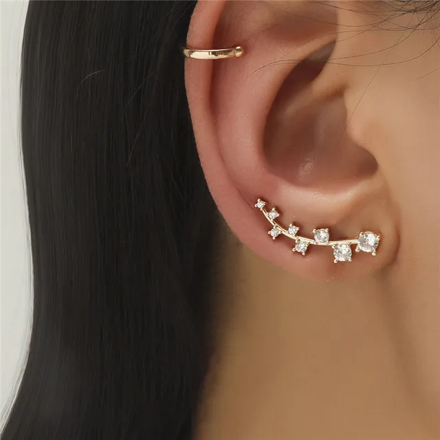 • New Fashion Gold CZ Ear Climbers Pearl Ear Cuffs No Piercing Fake Cartilage Earrings for Women Helix Piercing Studs Girls