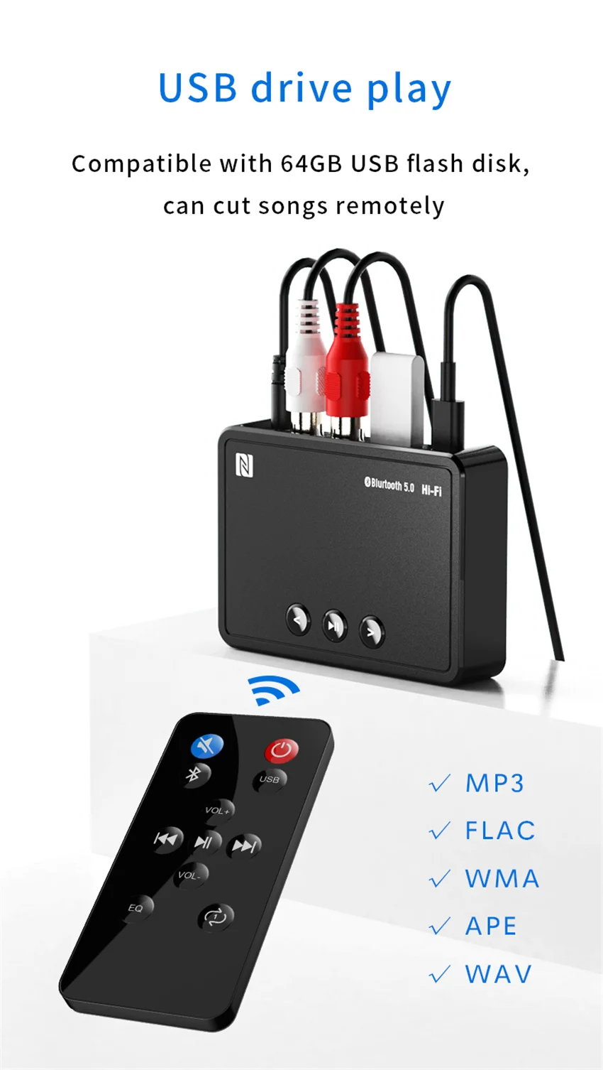 • 5.0 Receiver APP and IR Control AUX 3.5mm U Disk Stereo NFC Wireless Adapter For Wired Speaker Car Audio Transmitter