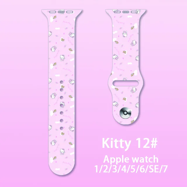 • Cartoon Hello Kitty Silicone Strap For Apple Watch Band 41mm 45mm 44mm 42mm 40mm 38mm Bracelet For iWatch SE 7 6 5 4 3 2
