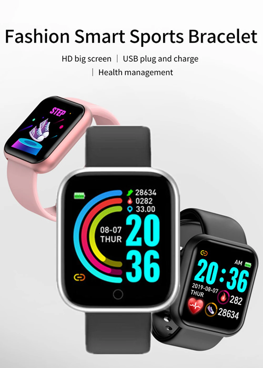 Brand new bracelet charging method, quick-release detachable wristband design, can be charged by plugging in the USB interface, eliminating the trouble of carrying a charging cable and charging stand.