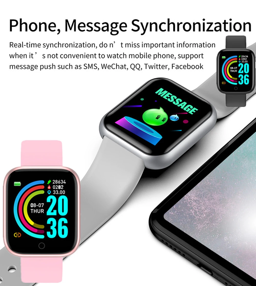 Wholesale Good Price 10PC Y68 D20 Pro Smart Watch Men Women Put Photo DIY Watch Face Fitness Tracker Sport SmartWatch D20