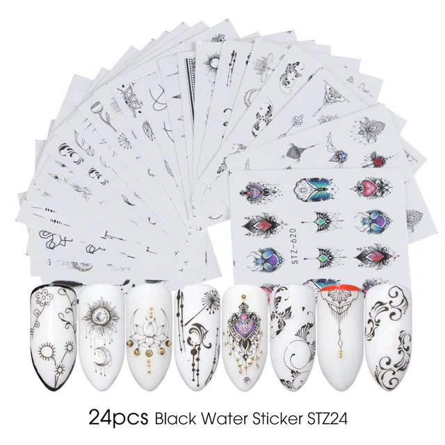 1Set Mixed Stickers for Nails Rose Flowers Butterfly Water Decals Nail Art Decoration Slider Polish Transfer Foils