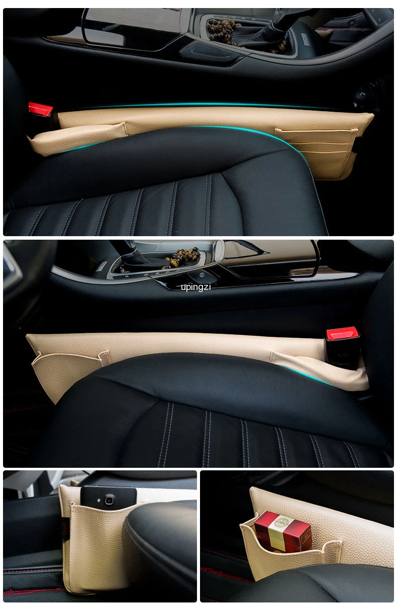 Seat Gap Filler Pockets PU Leather Storage Car Organizer Car Seat Slit Gap Pocket Storage Leak Stop Pad Soft Padding