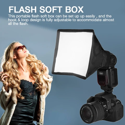 • This portable flash soft box can be set up up easily,and the hook & loop design is fully                                                             adjustable to accommodate almost all the flash.