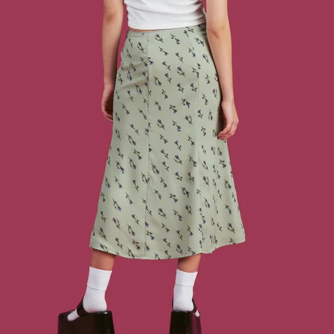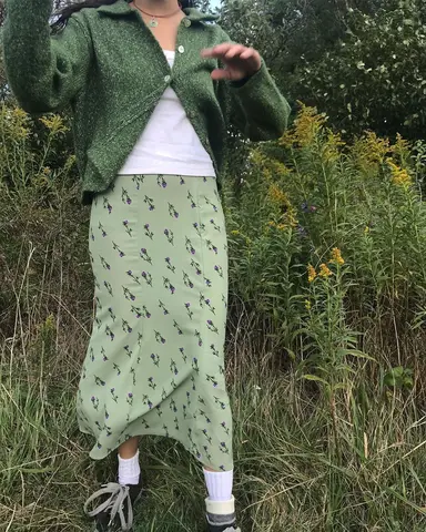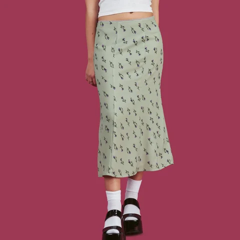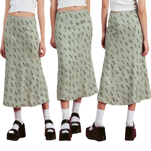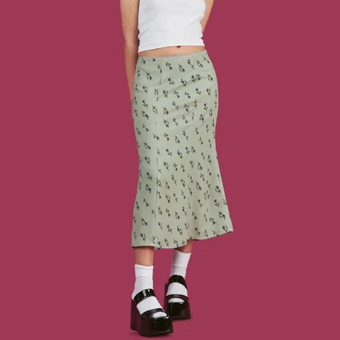 Floral Print Plaid High Waist Midi Skirt Women Sexy Streetwear Elastic Harajuku Vintage Y2K Black Trumpet Long Skirts