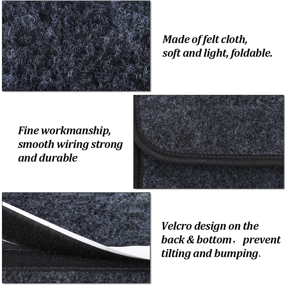 • Velcro on the back and bottom to prevent tilting and rolling caused by bumps.