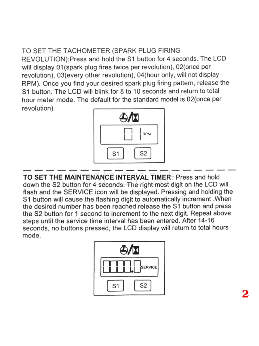 - With wrap black wire around sparkplug wire, can work on all spark ignition engines by selecting engine type using S1 and S2 buttons