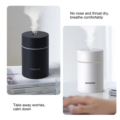 *1. Mini USB humidifier with Color-Changing night light, low operating noise that does not disturb work and nap.