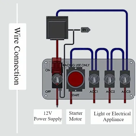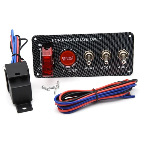 Car Accessory 12V LED Toggle Ignition Switch Panel Engine Start Push Button Set Universal for 12V Power Speediness & Racing Car