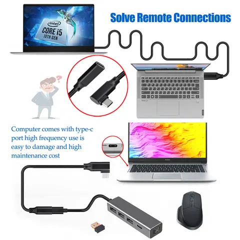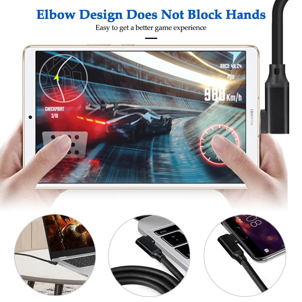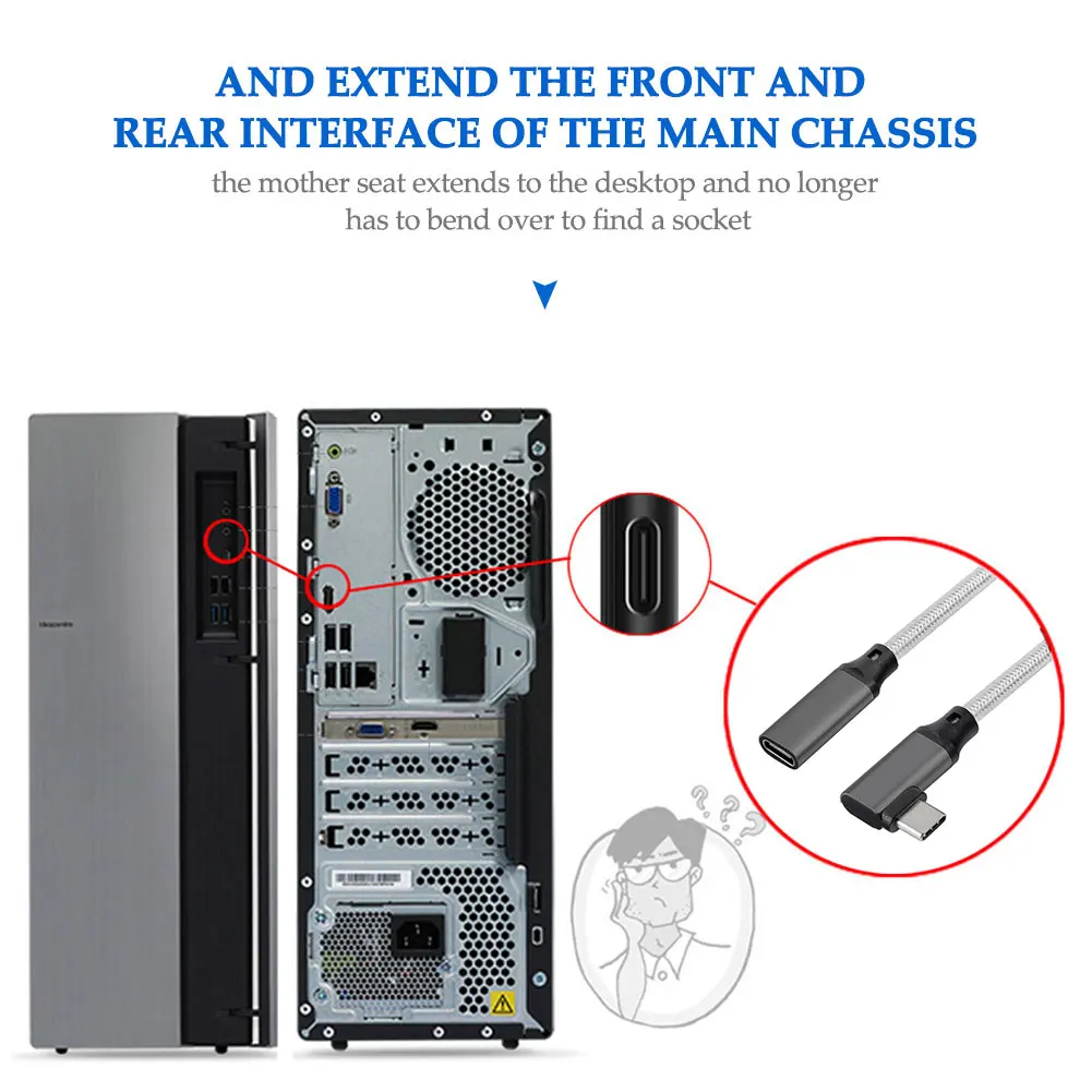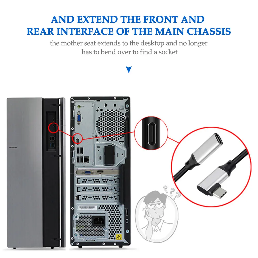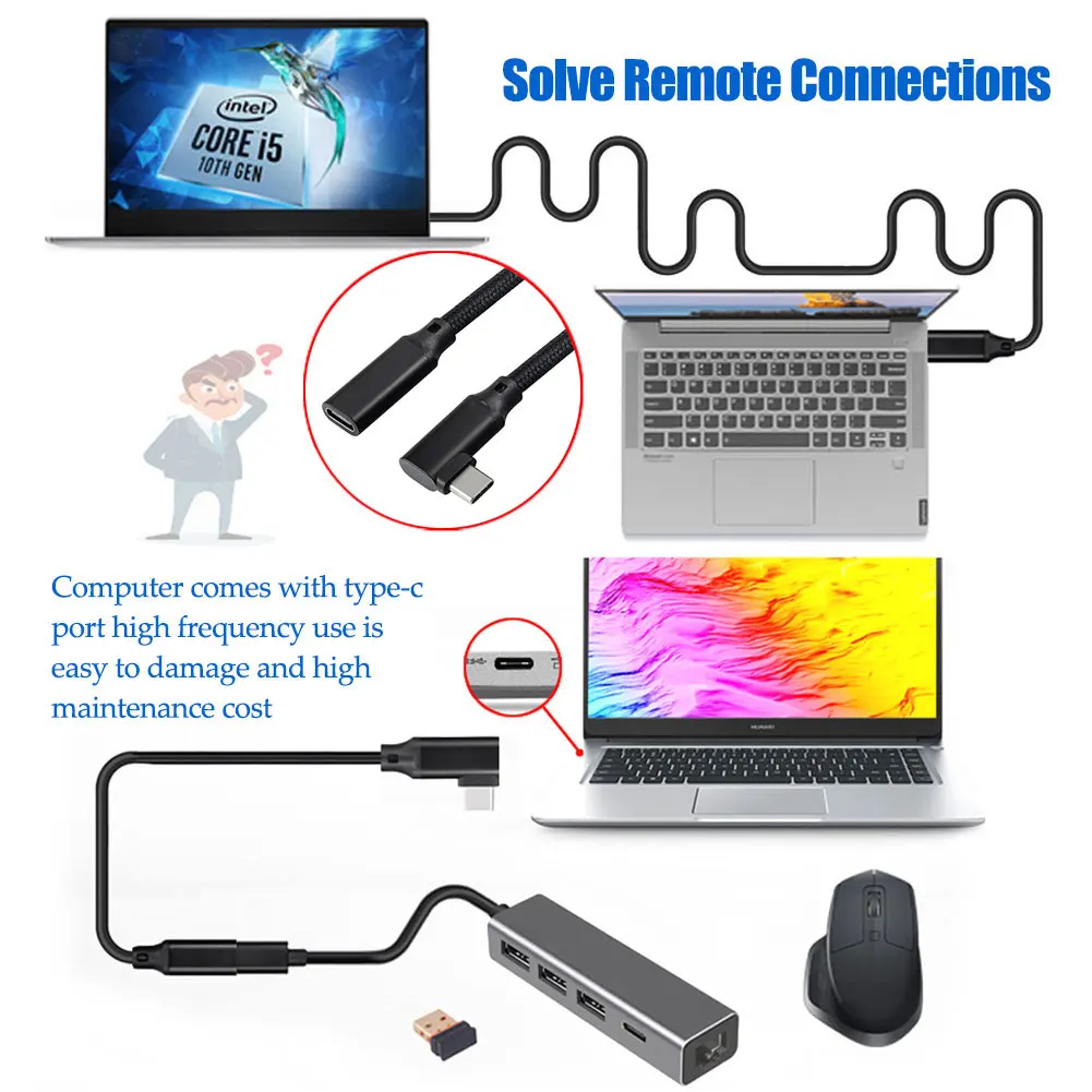 • HD Type-C Extension Cable Line 5A PD 100W Right Angle Bend 90 Degree 3.1C Male to Female Data Line Type C Extension Cord