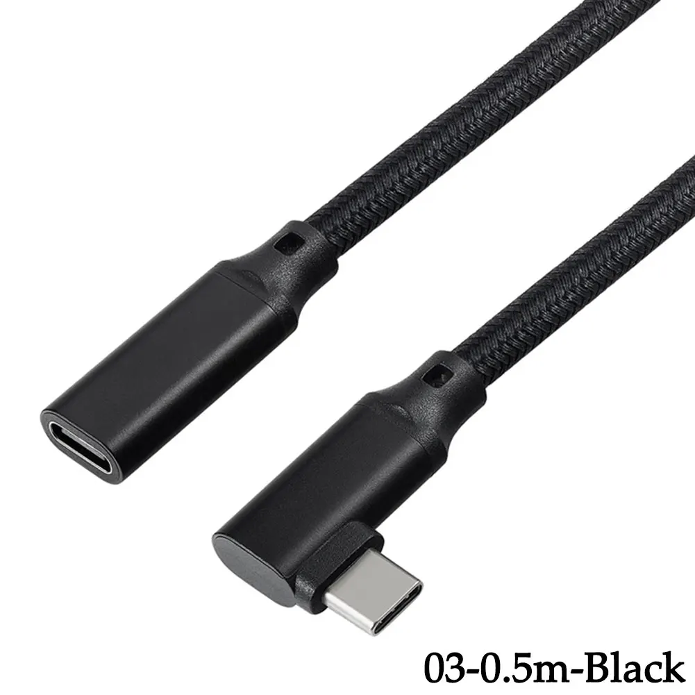 HD Type-C Extension Cable Line 5A PD 100W Right Angle Bend 90 Degree 3.1C Male to Female Data Line Type C Extension Cord