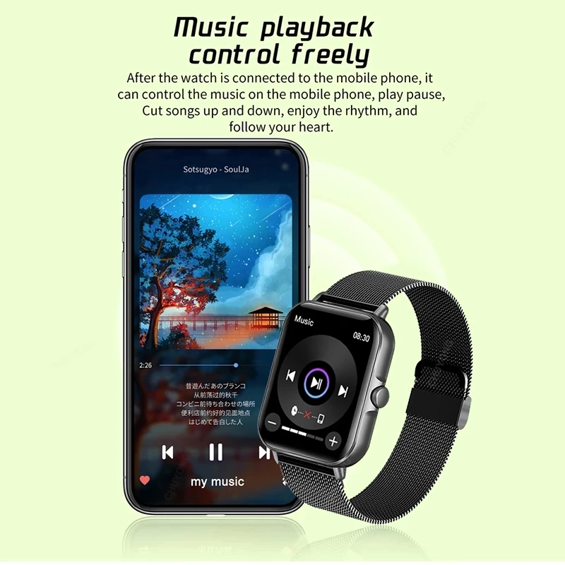 Function : Heart rate/Sleep monitoring/blood pressure/Blood oxygen/Multi-sports mode/Information and social information push/incoming call/Alarm clock/Sedentary reminder/Stopwatch/Find phone/Remote camera