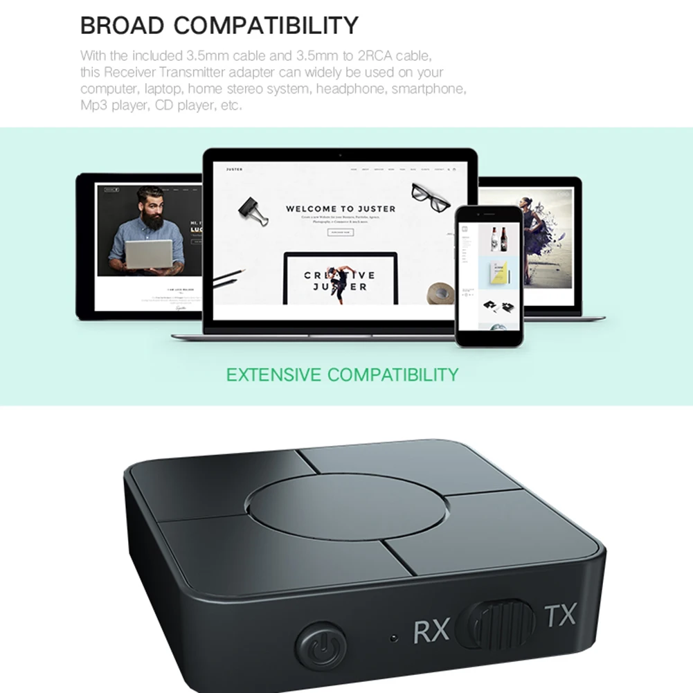 KN326 Bluetooth-compatible 5.0 Audio Transmitter Receiver 3.5mm AUX Jack RCA Wireless Music Audio Adapter with Mic for Car PC TV Headphones