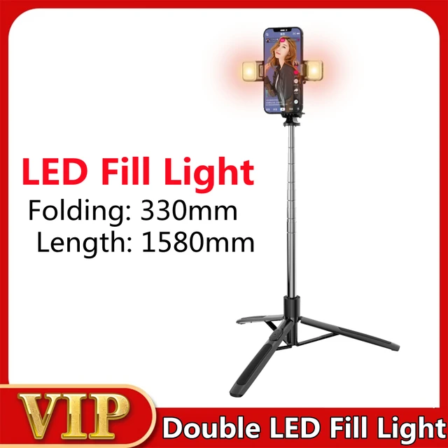 4 in 1 Wireless Bluetooth Selfie Stick 1580mm With Double Fill Light Foldable Tripod Monopod For Gopro Action Cameras Smartphone