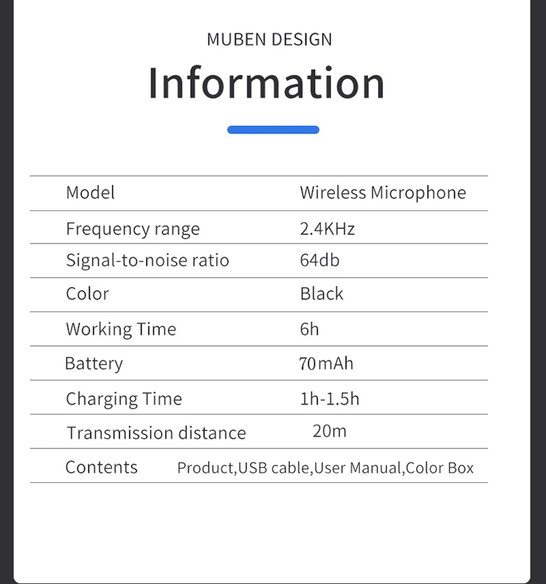 The product contains: manual*1, charging cable*1, microphone*1, receiver*1