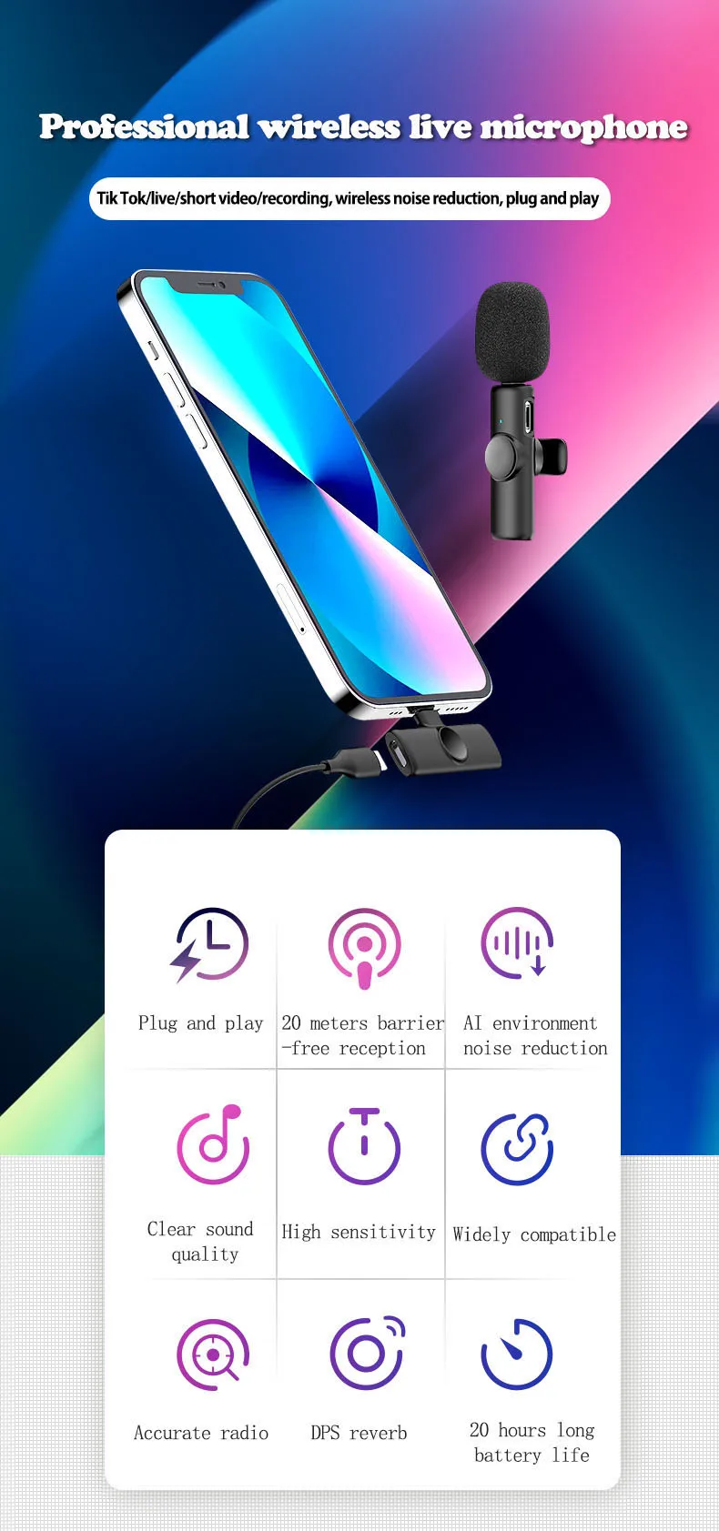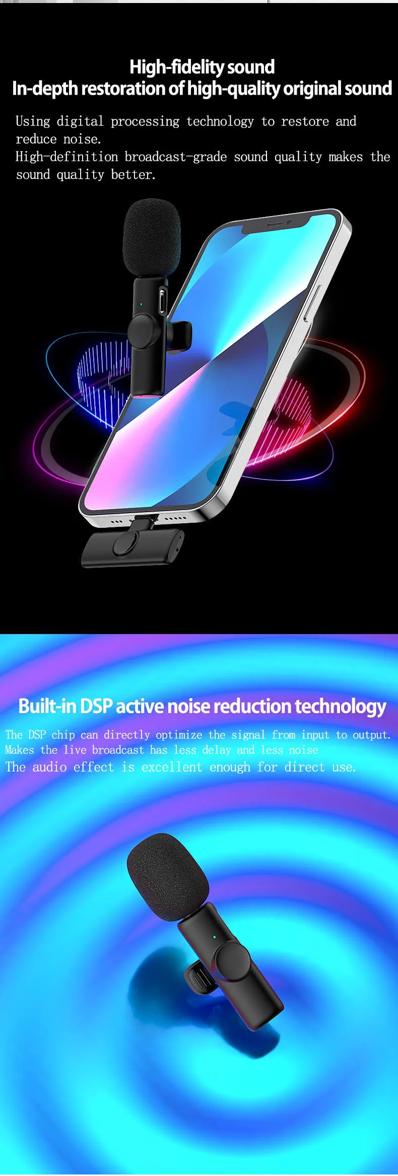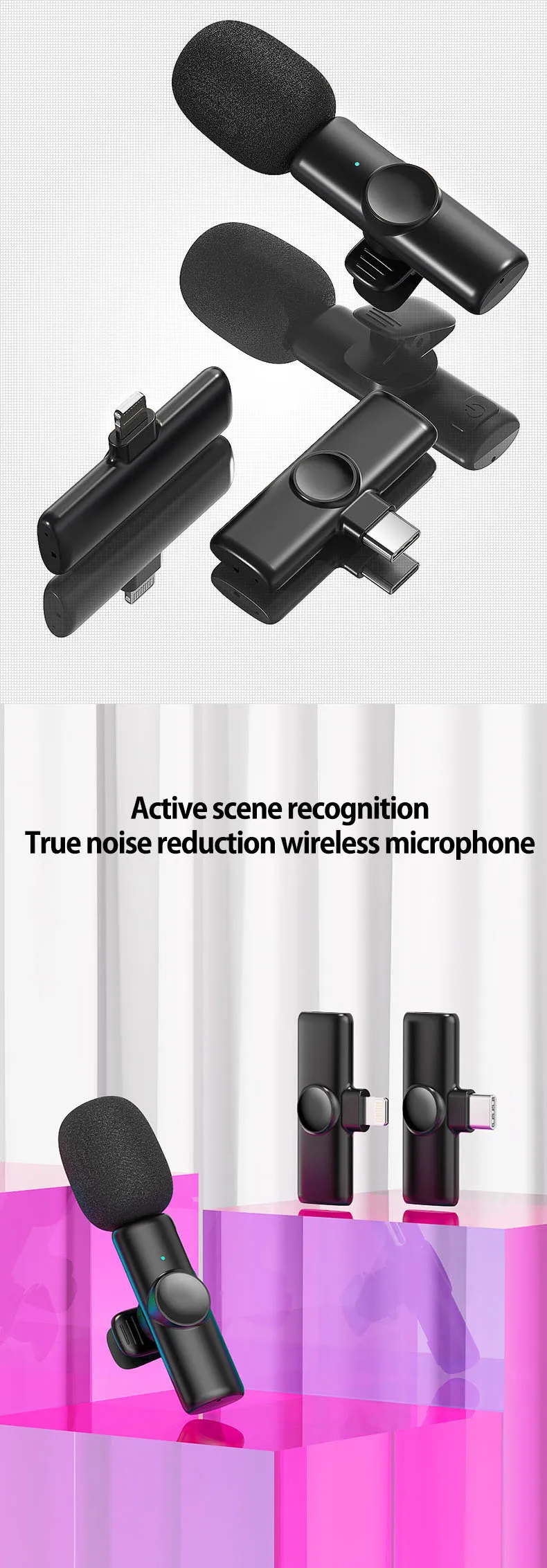 • Lavalier Microphone Professional Microphone for Phone Tiktok Studio Vlog Youtube Gamer Sound 2.4G Recording Radio1 to 2