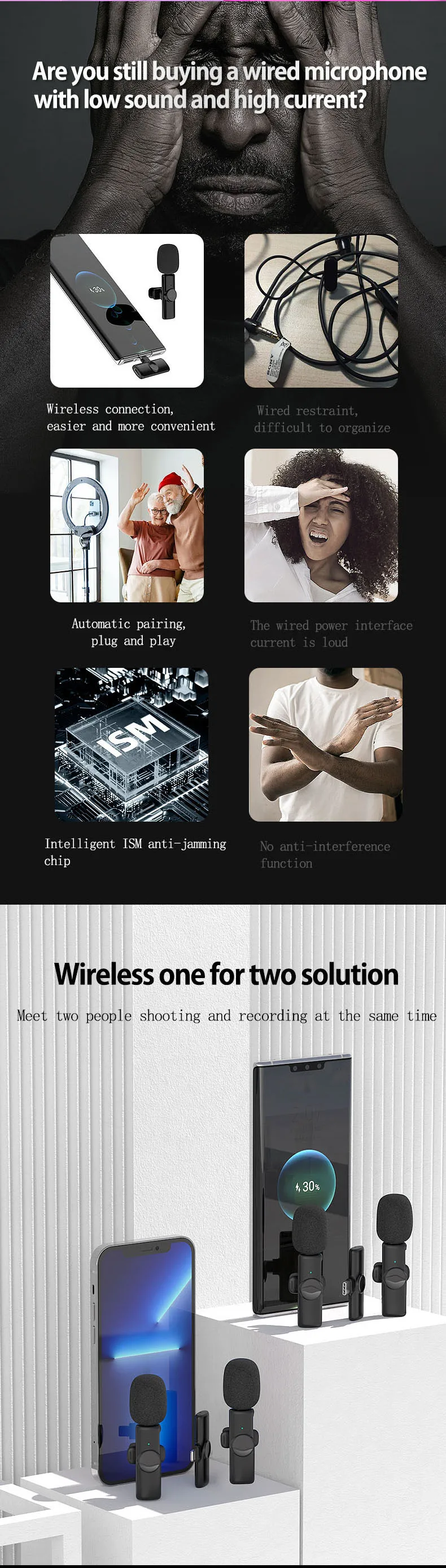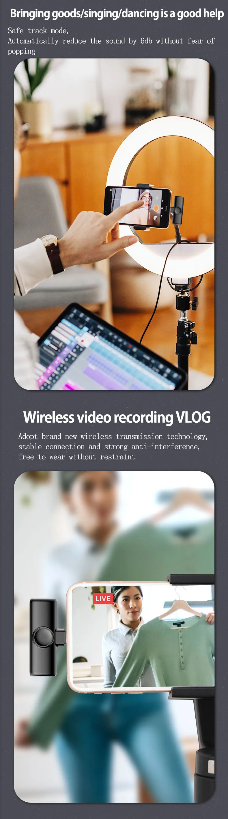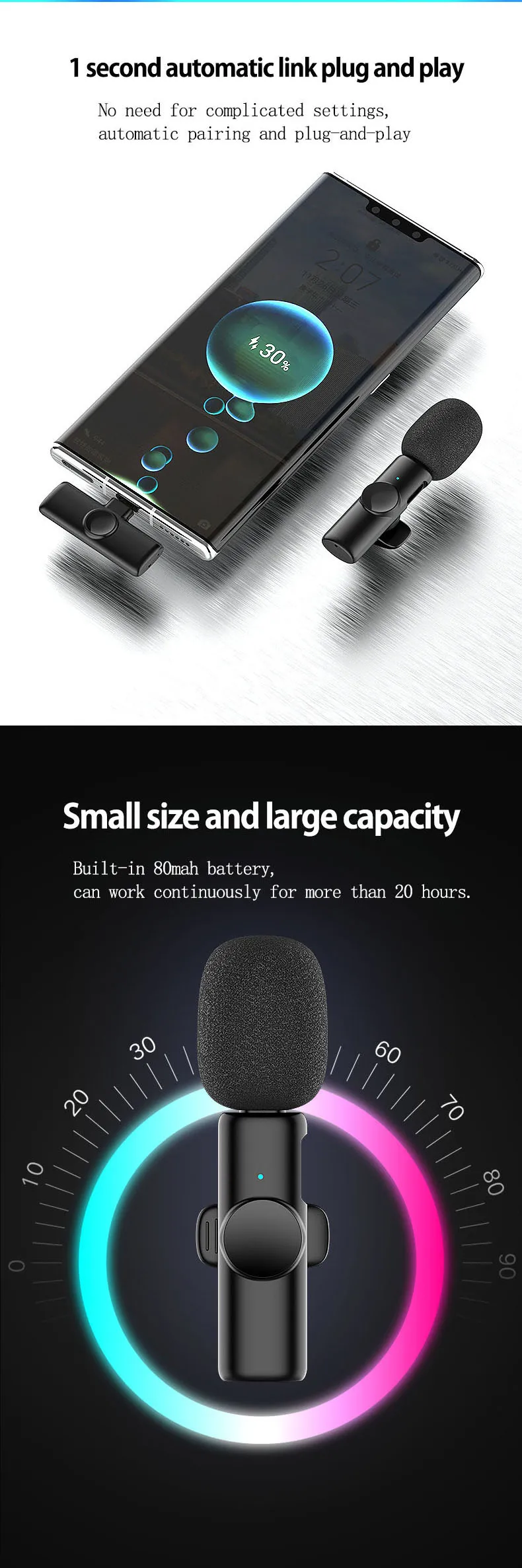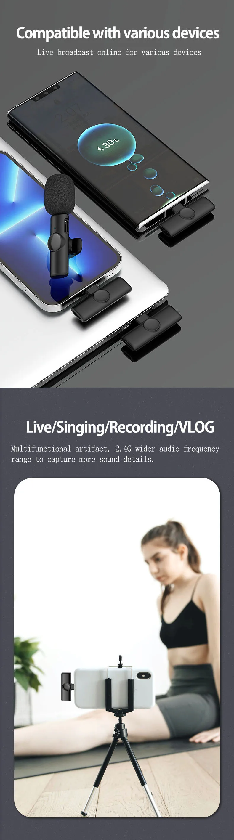 • Lavalier Microphone Professional Microphone for Phone Tiktok Studio Vlog Youtube Gamer Sound 2.4G Recording Radio1 to 2