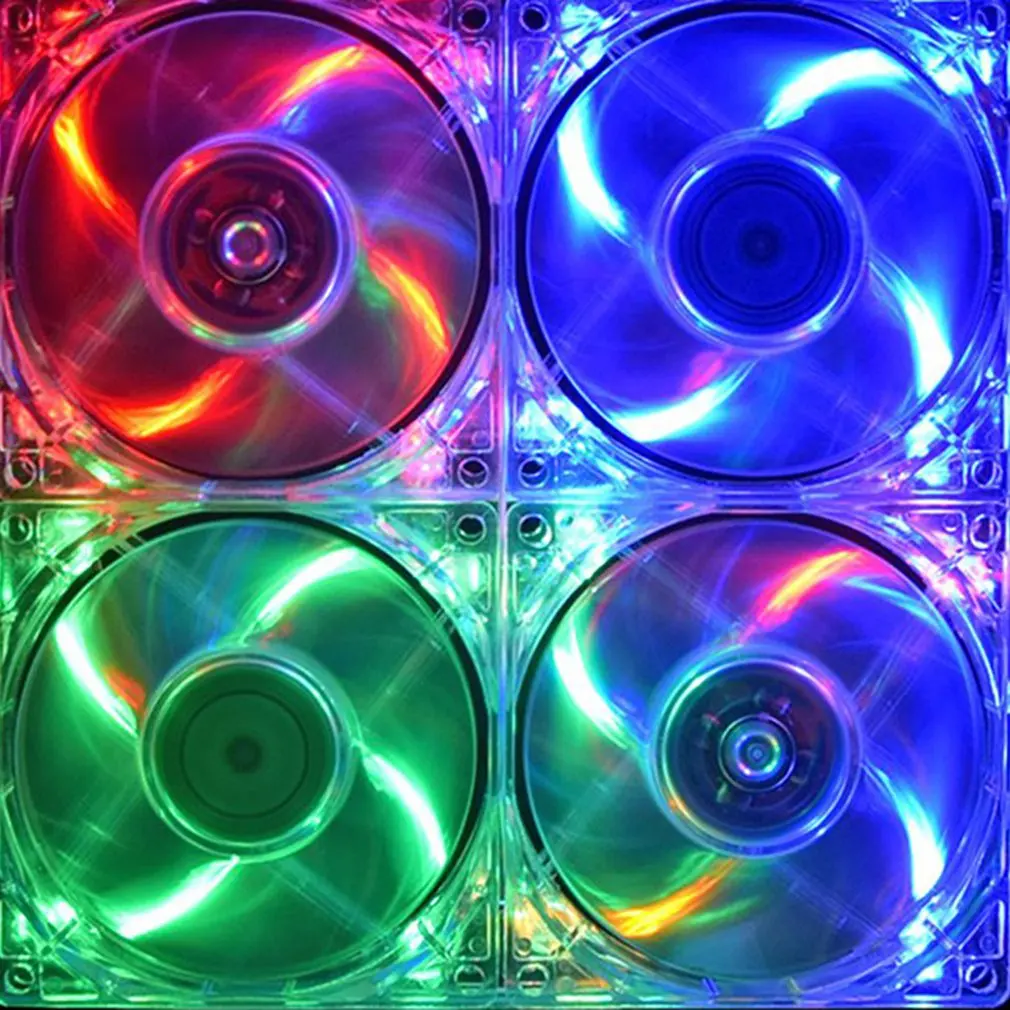 PC Computer Fan Quad 4 LED Light 80mm/120mm PC Computer Case 12V Cooling Fan Mod Quiet Molex Connector Easy Installed Fan Colorful