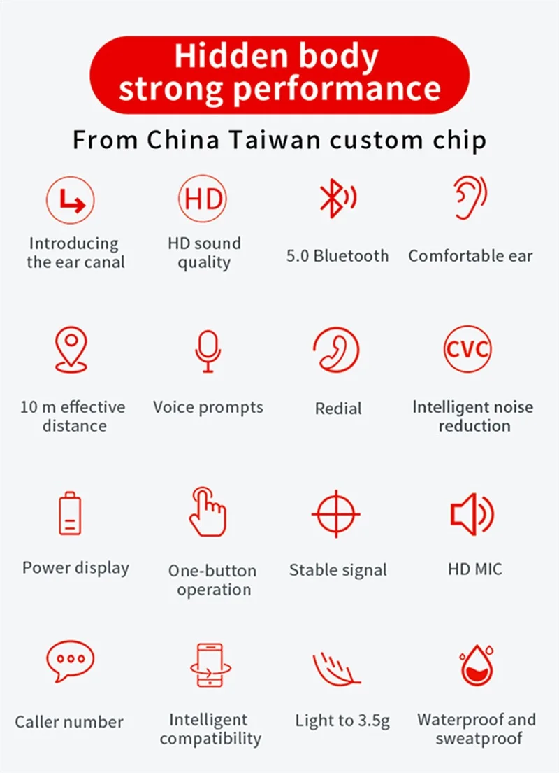 1 Unpack and place the left and right headphones into the charging compartment. The headset is lit red. If it is not lit, please charge the battery.