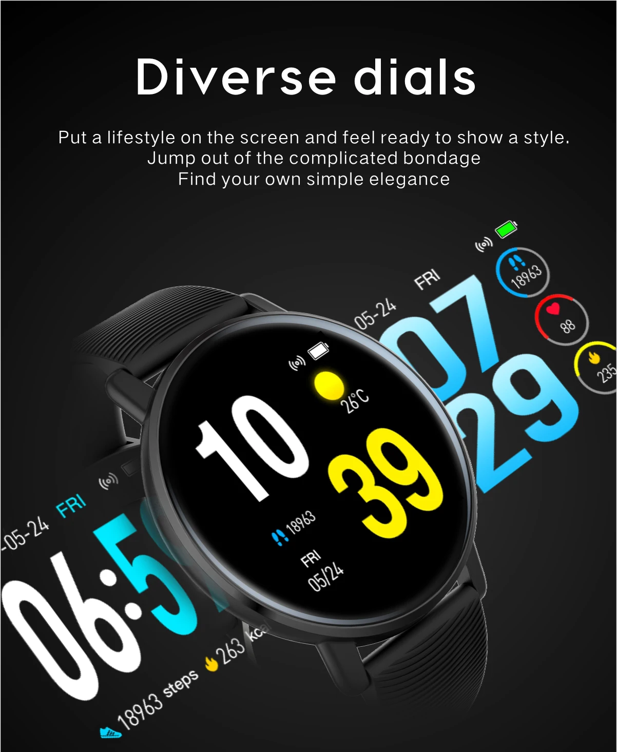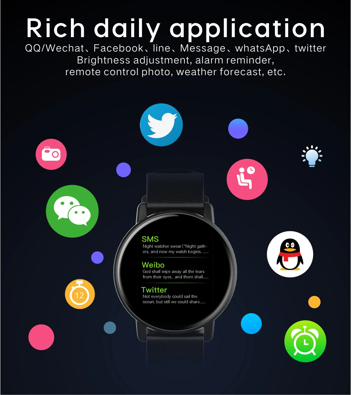 Round Smart Watch Full Touch HD Screen Sport Tracker Blood Pressure Monitor WhatsApp Facebook Message Reminder Smartwatch H5