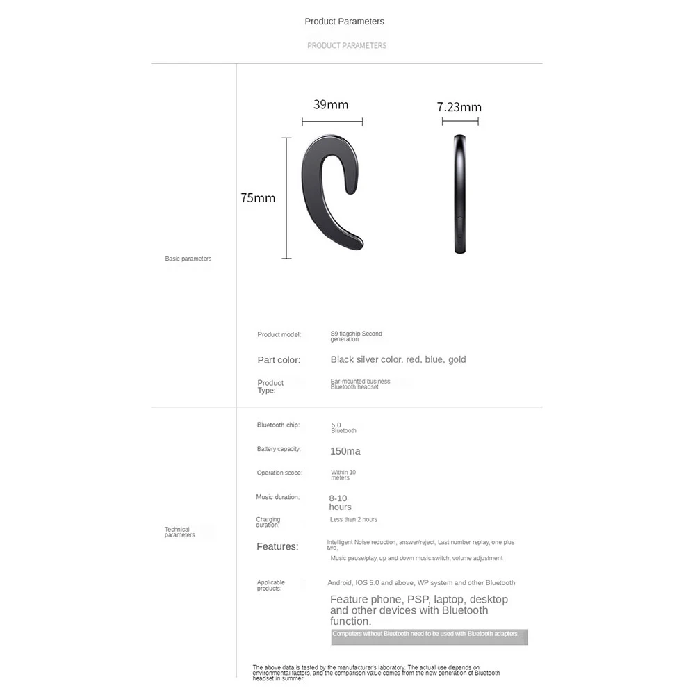 1.★Intelligent noise reduction, answer/reject, last number replay, one for two, music pause/play, upper and lower song switching, volume adjustment, Android, IOS 5.0 and above, WP system and other mobile phones with Bluetooth function, PSP, Notebook computers, desktop computers and other devices with Bluetooth function, and computers without Bluetooth need to be used with a Bluetooth adapter.