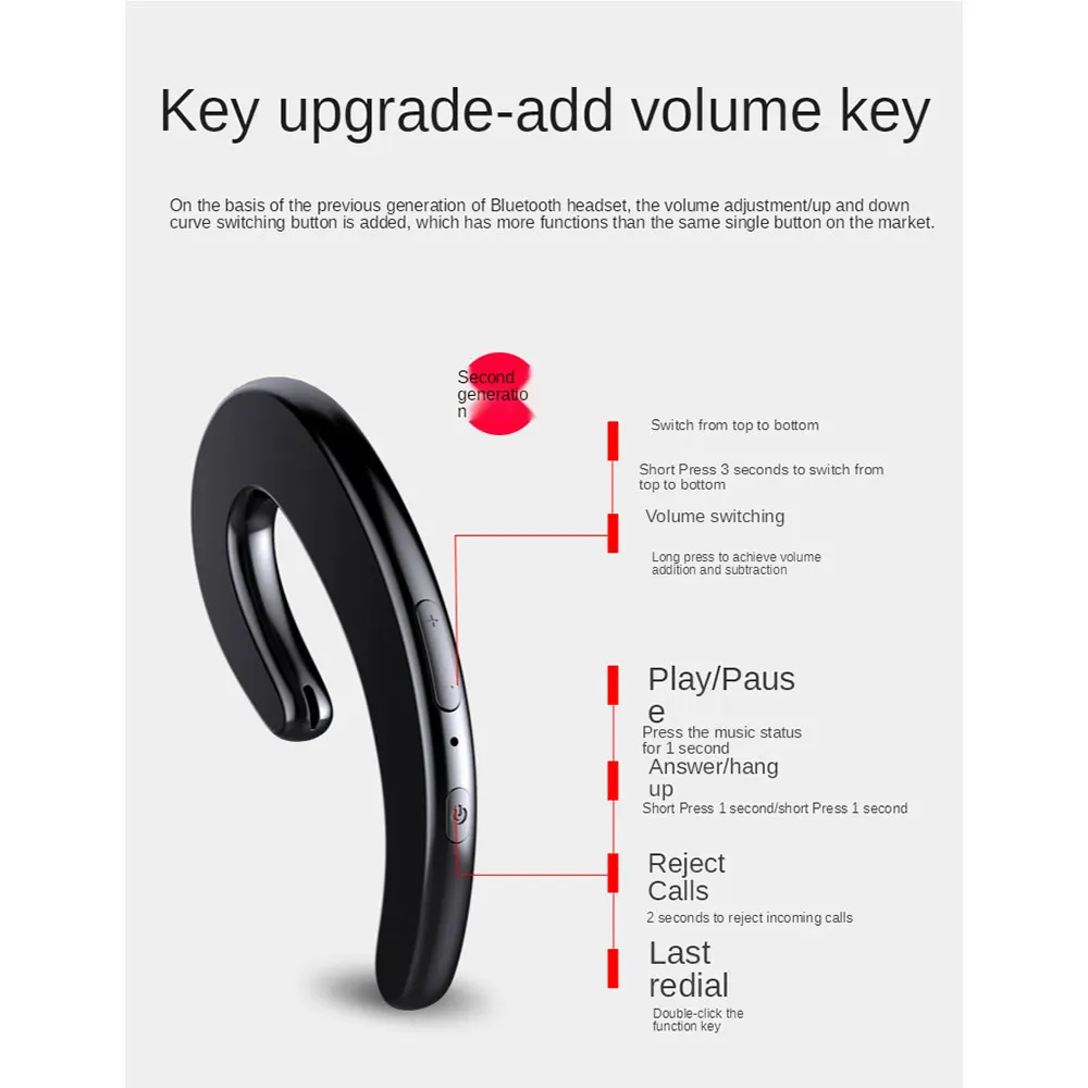 • Integrated Bone Conduction Type Hanging Ears Monaural Bluetooth-compatible Wireless Headset, Wireless Headset With Warehouse