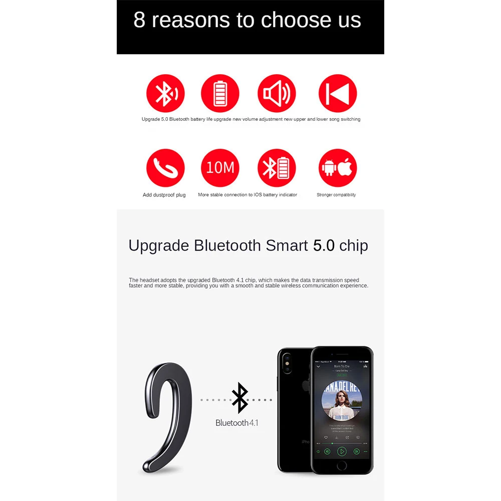 5.★External speaker unit★Wireless earplugs are close to your ears, but not in your ears. You can listen to music and the surrounding environment, so as to keep cycling, running, safe driving, and more convenient for business, work and other scenes.