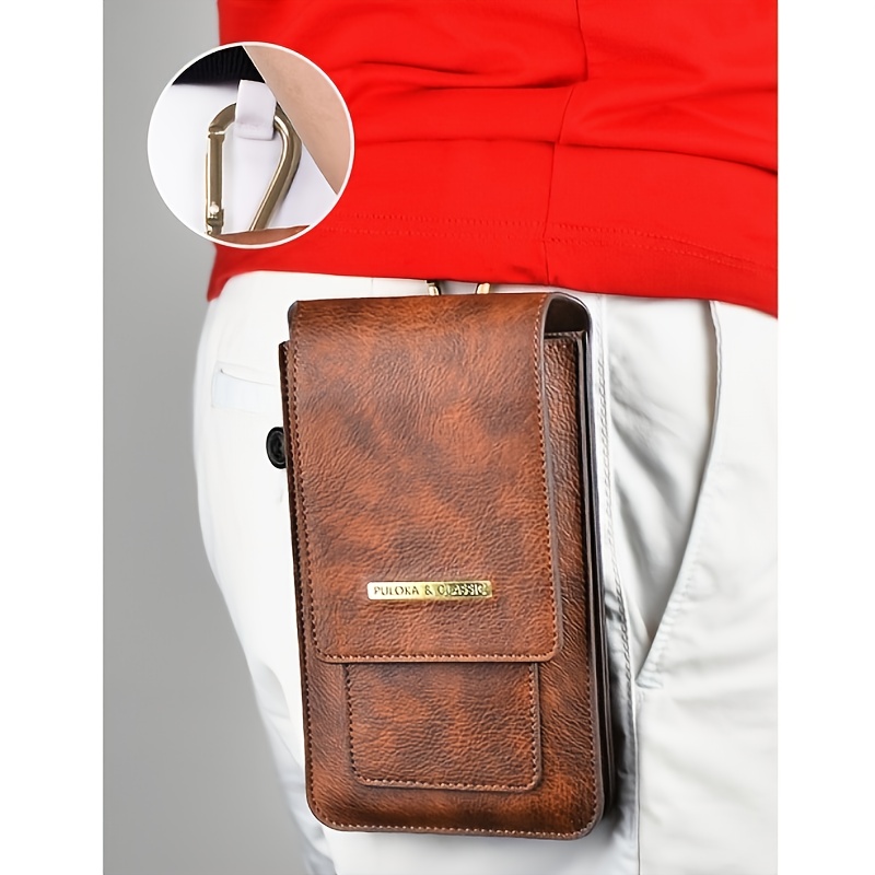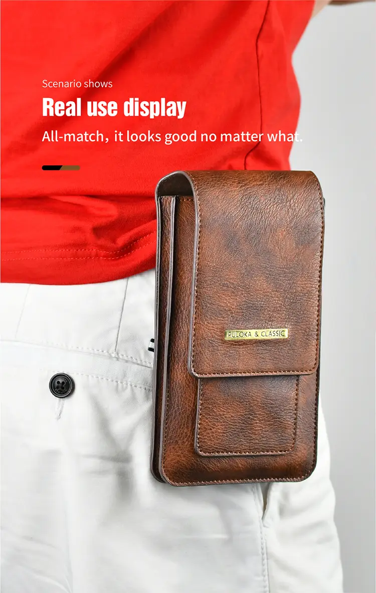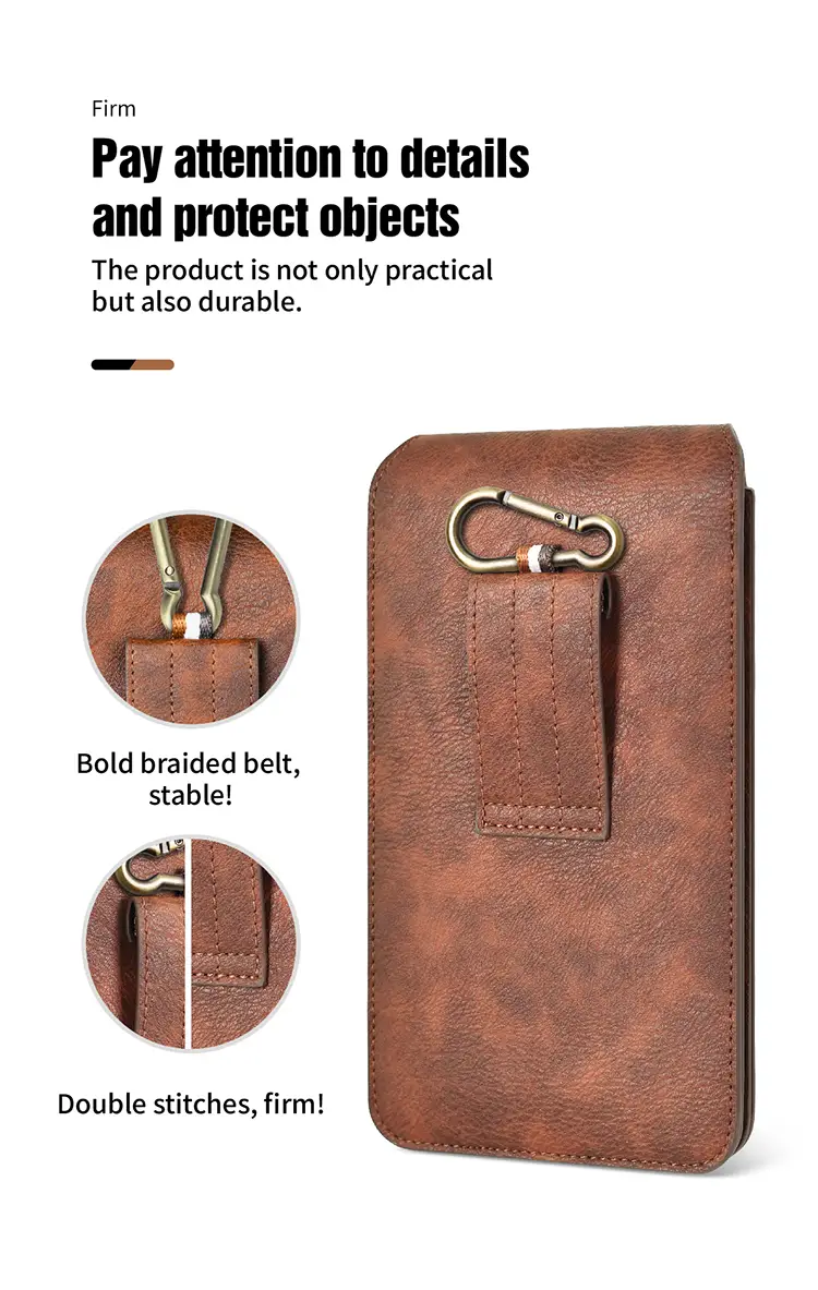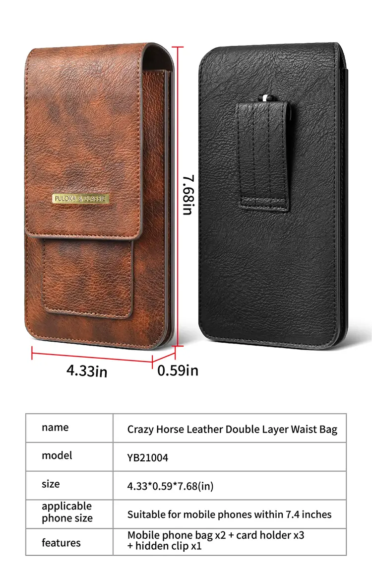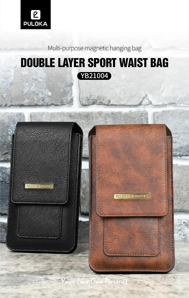 7.2 Inch General Leather Double Layer Phone Waist Baguette Bag With Hiking Buckle