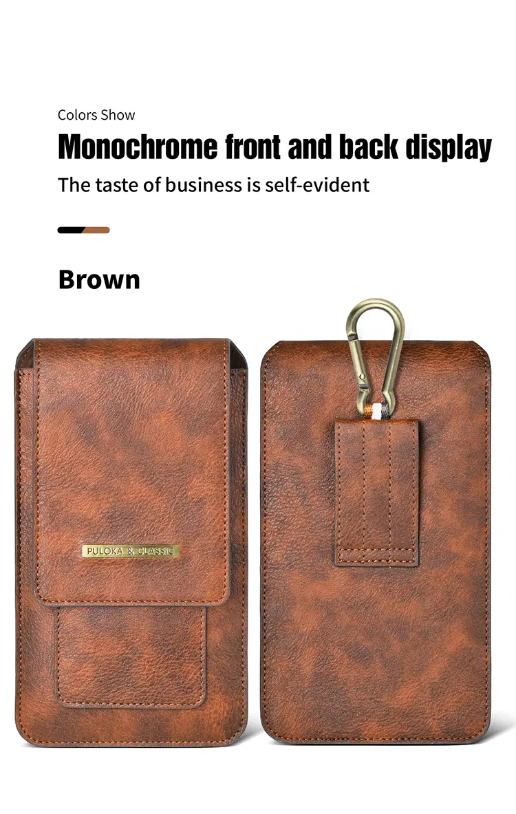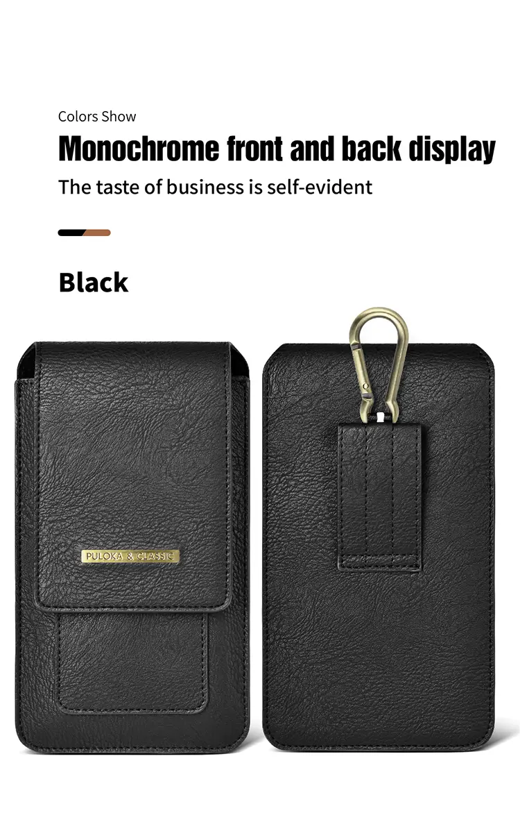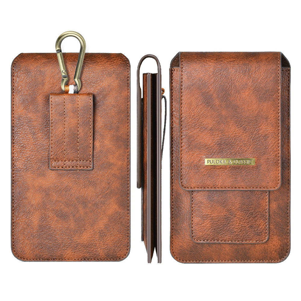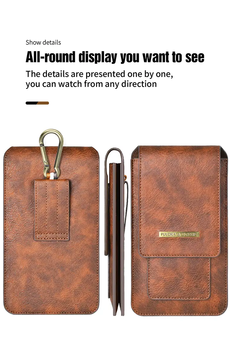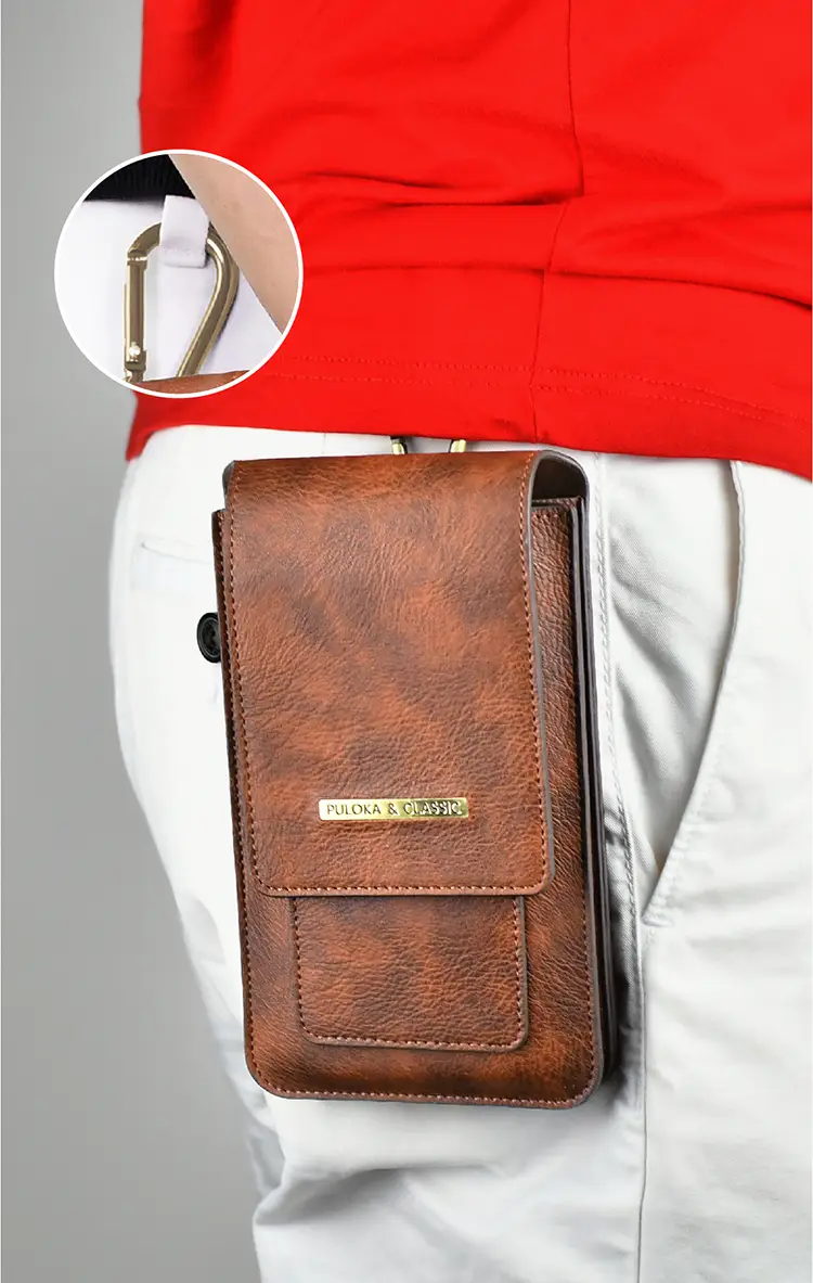 7.2 Inch General Leather Double Layer Phone Waist Baguette Bag With Hiking Buckle