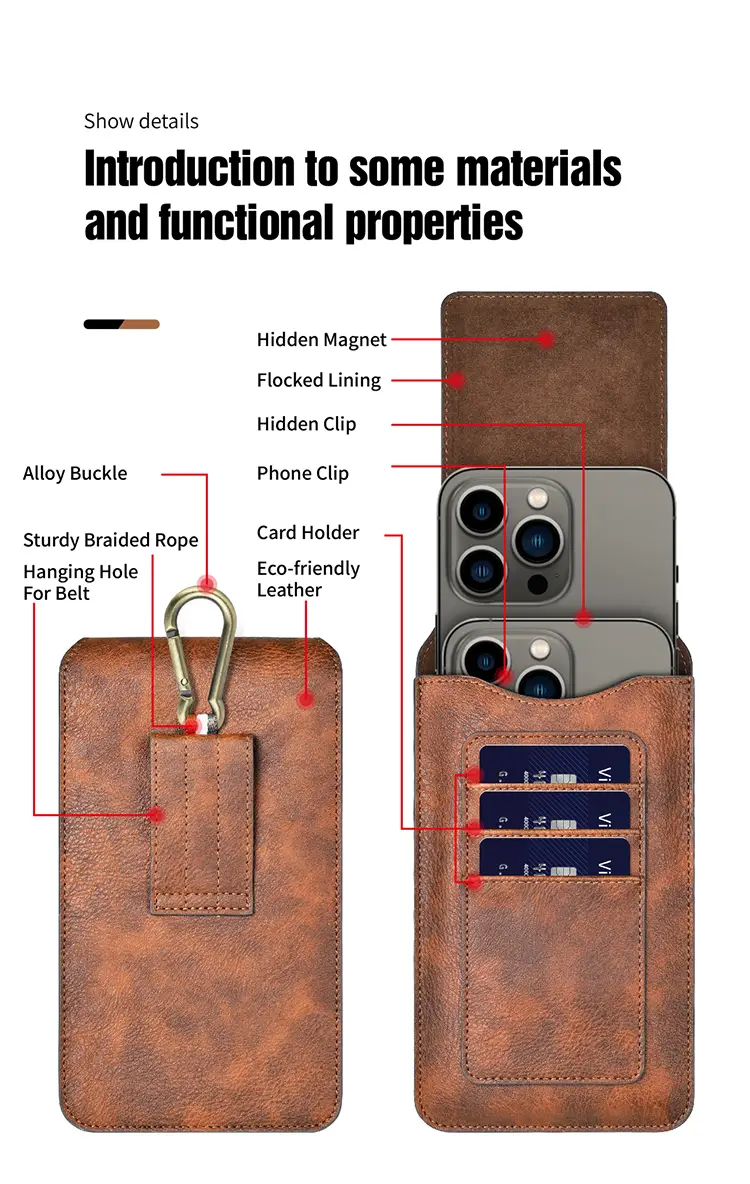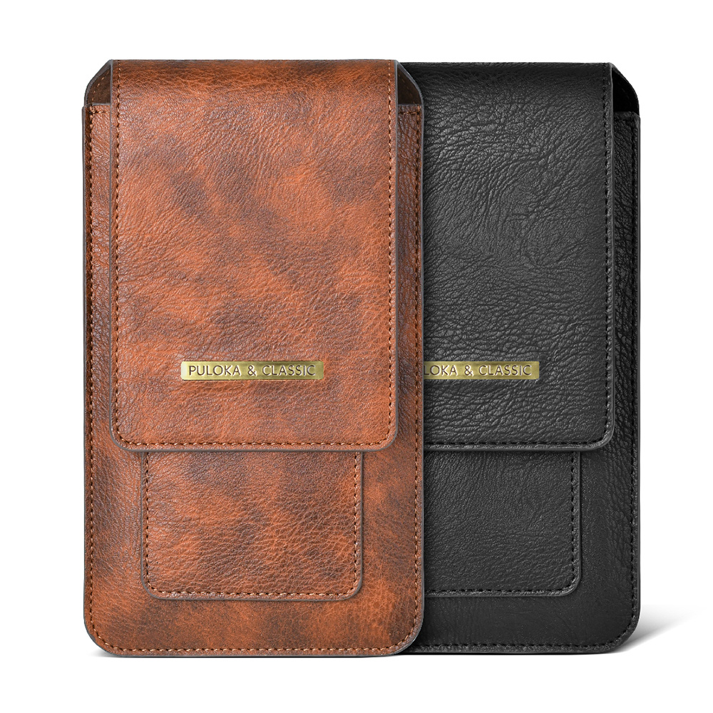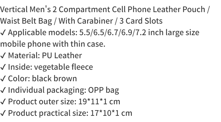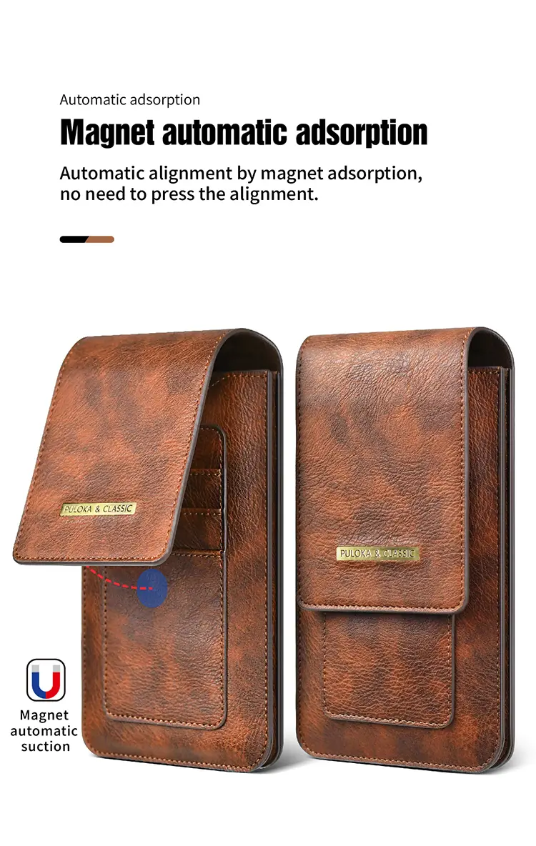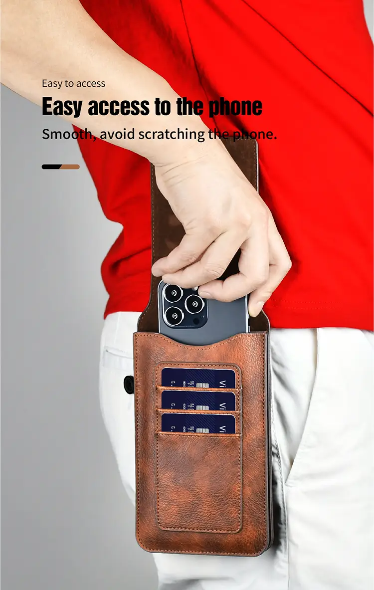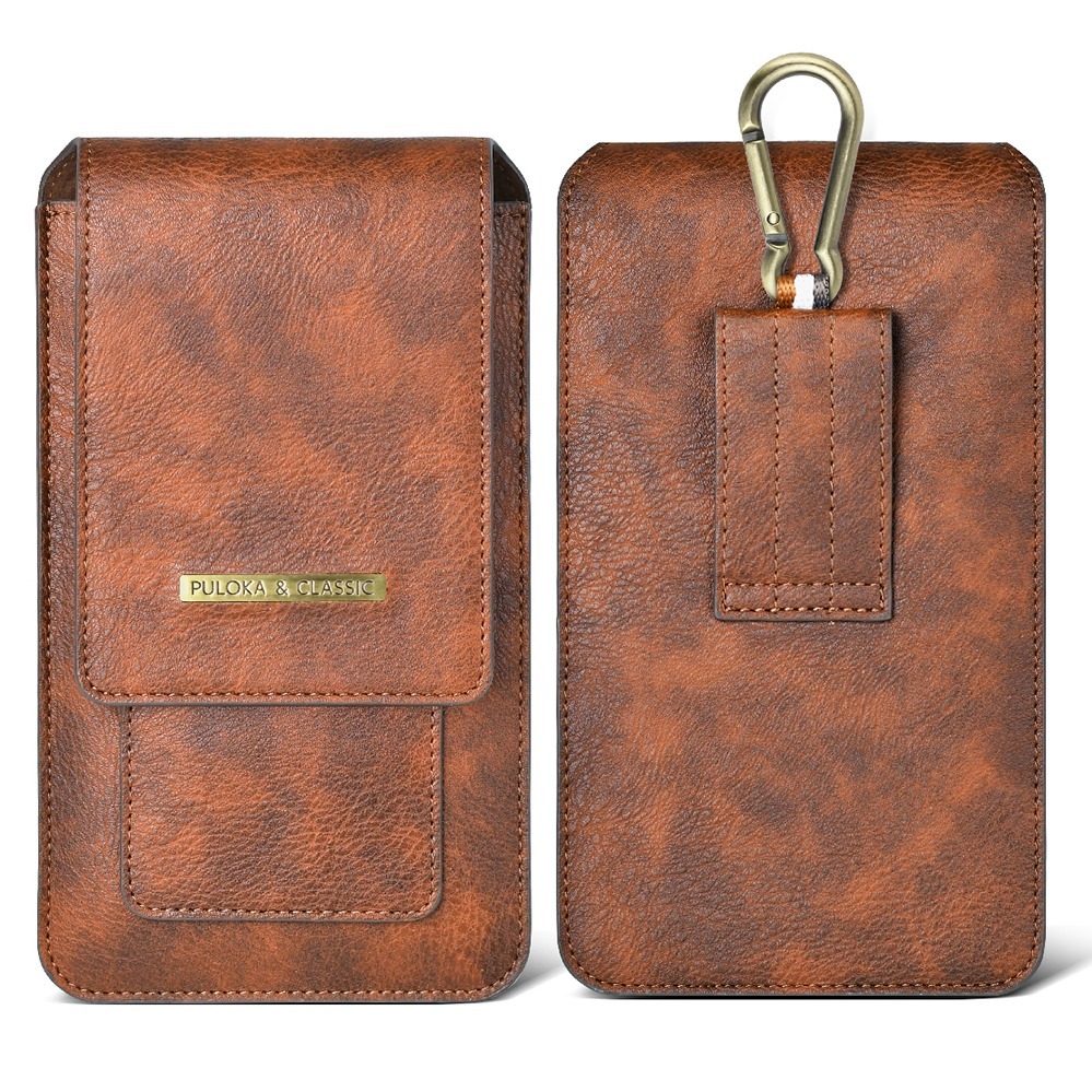7.2 Inch General Leather Double Layer Phone Waist Baguette Bag With Hiking Buckle