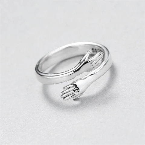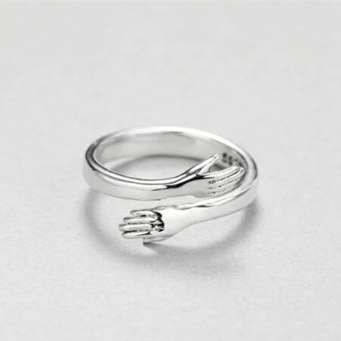 Hot New Silver Plated Rings for Women Temperament Personality Jewelry Creative Love Hug Ring Fashion Tide Flow Open Ring Anillos