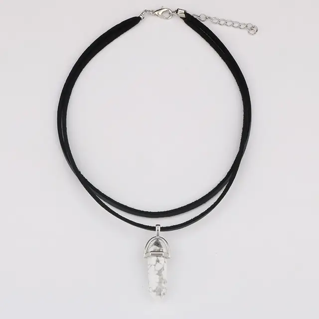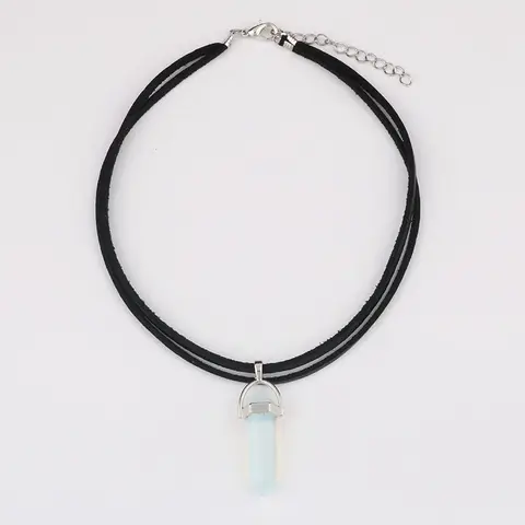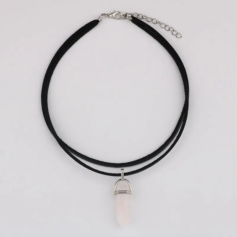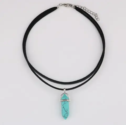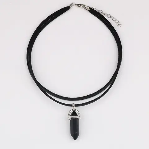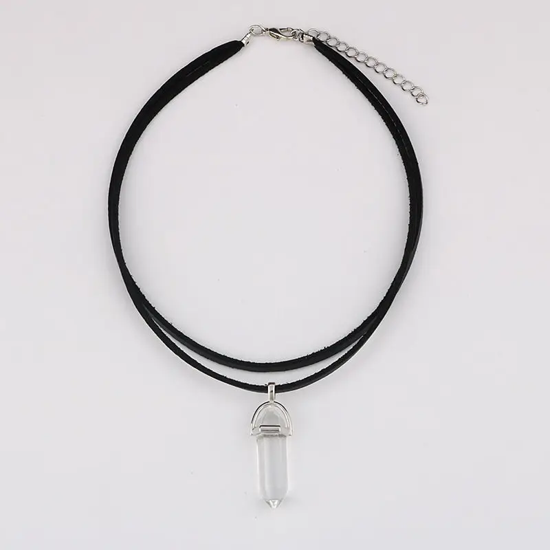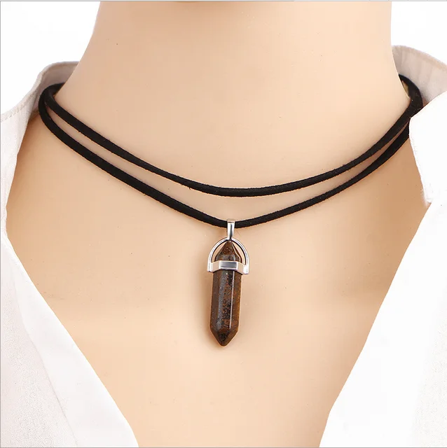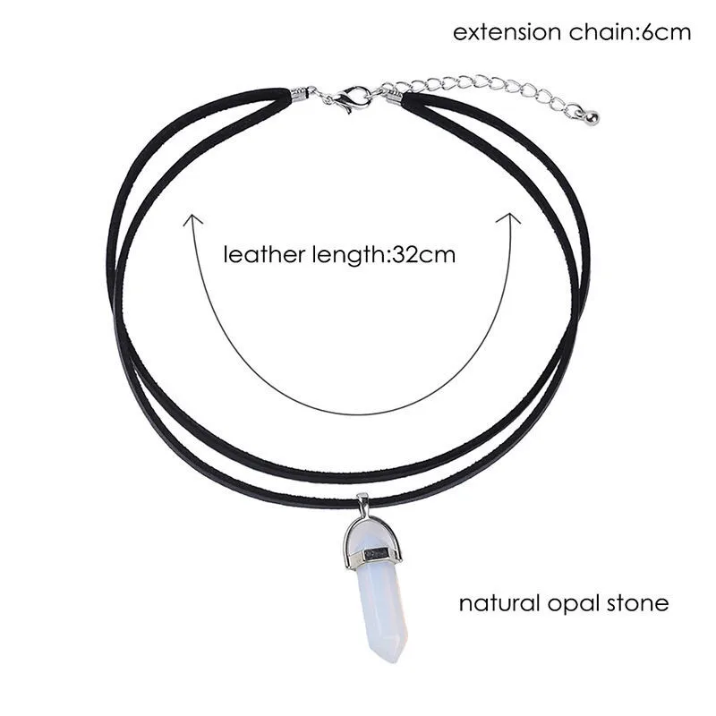 • Crystal Chakra Pendulum Pendant Necklaces For Women Teens Girls Hexagonal Stone Leather Choker Chain Statement Necklace