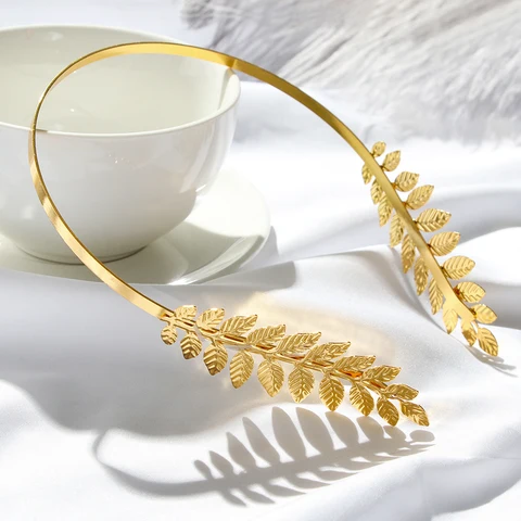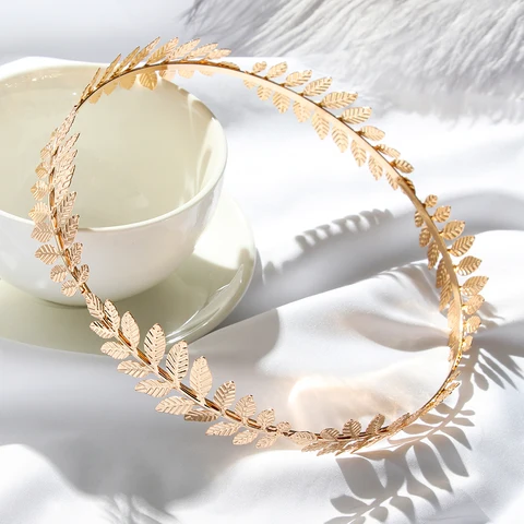 Gold leaf wedding roman bride greek women hair accessories bride head jewel headband head tiaras crown jewelry Hair Hoop
