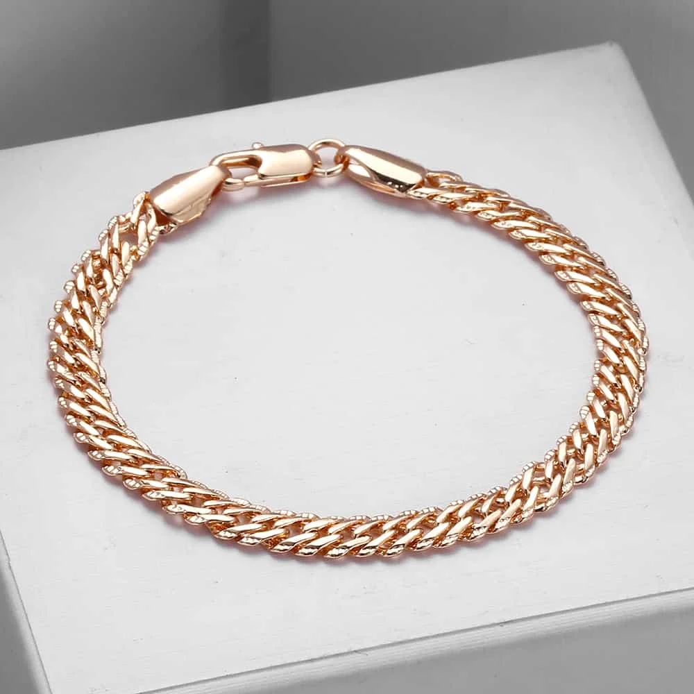 for Women Men 585 Rose Gold Copper Curb Cuban Snail Link Chain Bracelet On Hand Hot Party Jewelry Gifts 18cm-23cm GBB1