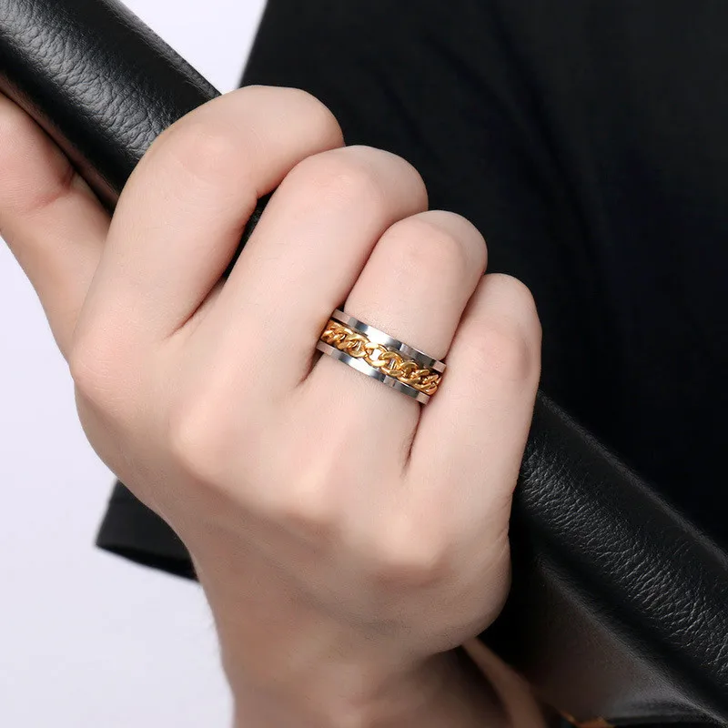 Fashion Women Rotatable Chain Link Men's Spinner Ring Stainless Steel Chain Link Men's Titanium Steel Corkscrew Ring Gift