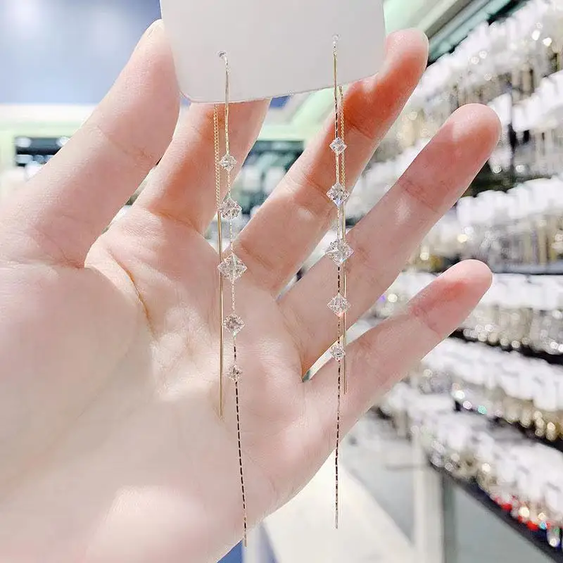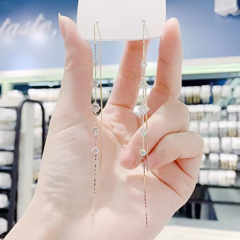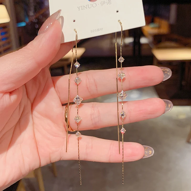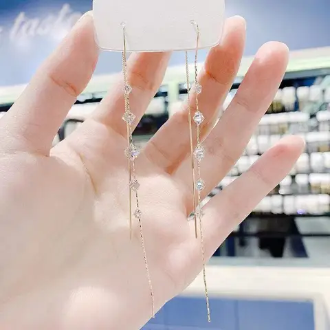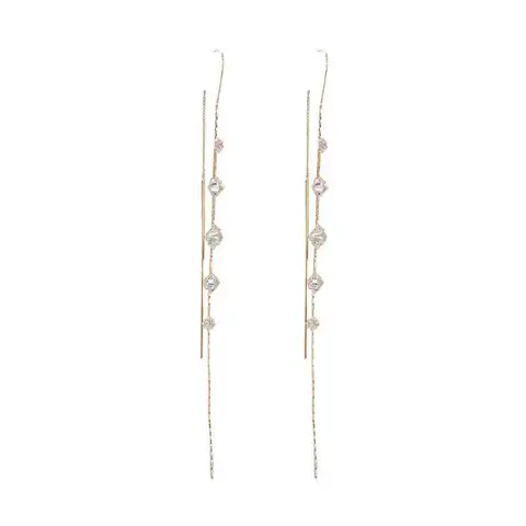 Gold Color Bar Long Thread Tassel Drop Earrings for Women Glossy Arc Geometric Korean Earring Fashion Jewelry Accessories