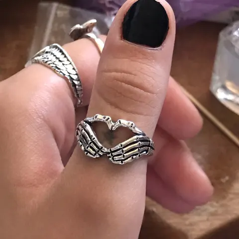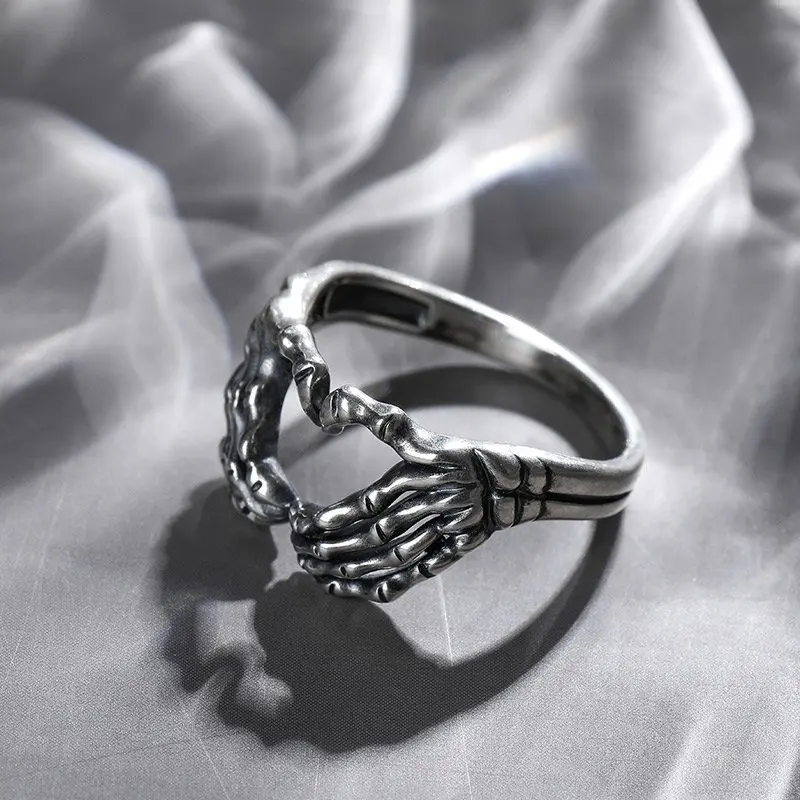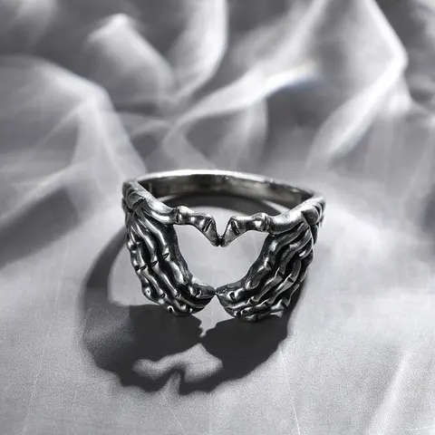 • skull hand with heart-shaped ring creative couple stainless steel personality punk hip hop men and women party ringjewelry
