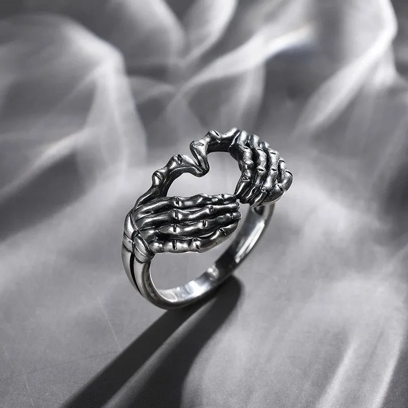 skull hand with heart-shaped ring creative couple stainless steel personality punk hip hop men and women party ringjewelry