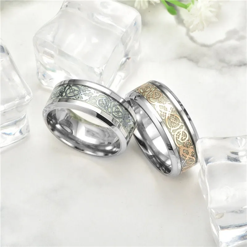 European and American fashion luminous dragon ring ring retro stainless steel fluorescent ring