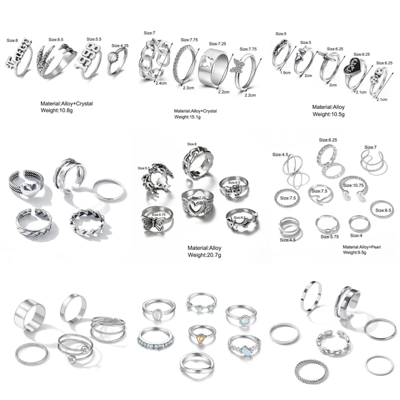 • Punk Cool Hiphop Chain Rings Multi-layer Adjustable Open Finger Rings Set Alloy Man Rings for Women Party Gift Jewelry