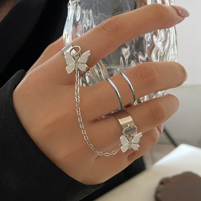 Punk Cool Hiphop Chain Rings Multi-layer Adjustable Open Finger Rings Set Alloy Man Rings for Women Party Gift Jewelry