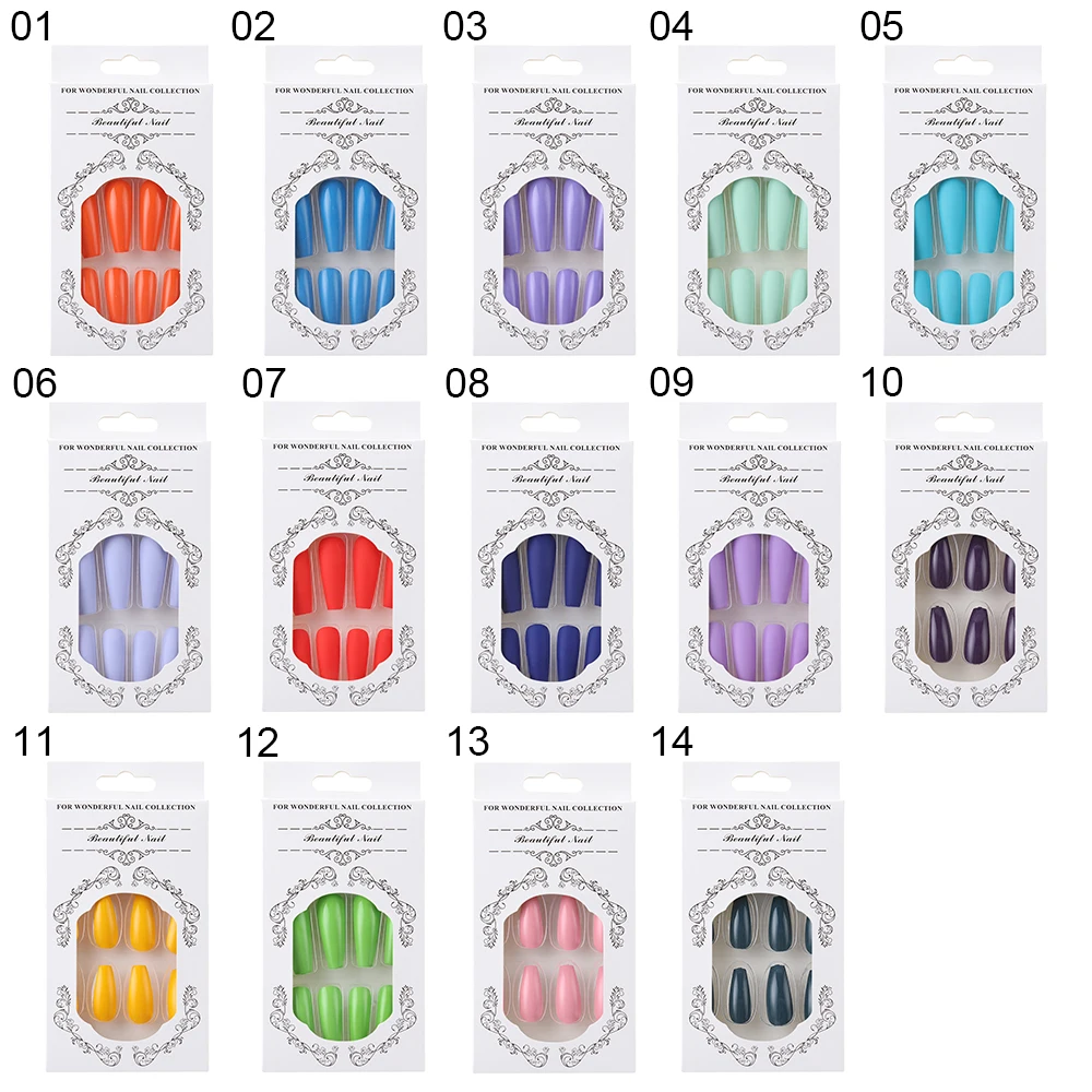 Brand New and High Quality Type: Full Nail Tips Material: Acrylic Color: 10 Colors for you choose Length:2.5-3.3cm Width:0.7-1.8cm Package Include:24pcs Fake Nails Features: 1.Design your own nails for wedding, party or weekend dating.Suitable for professional, nail art school/college, nail art artist and personal/home use, etc. 2.Made with sturdy acrylic material, no smell to your body and nails, providing a healthy & comfortable environment when you doing nail art. 3.Full Cover Coffin Design Coffin nails are easy to file, paint and apply. It looks natural and nice holding the color without separating or streaking, making your tips magical and stylish. 4.Easy to Use According to your option to wear them long or clip them short, easy to trim and file them to any length and shape you like.
