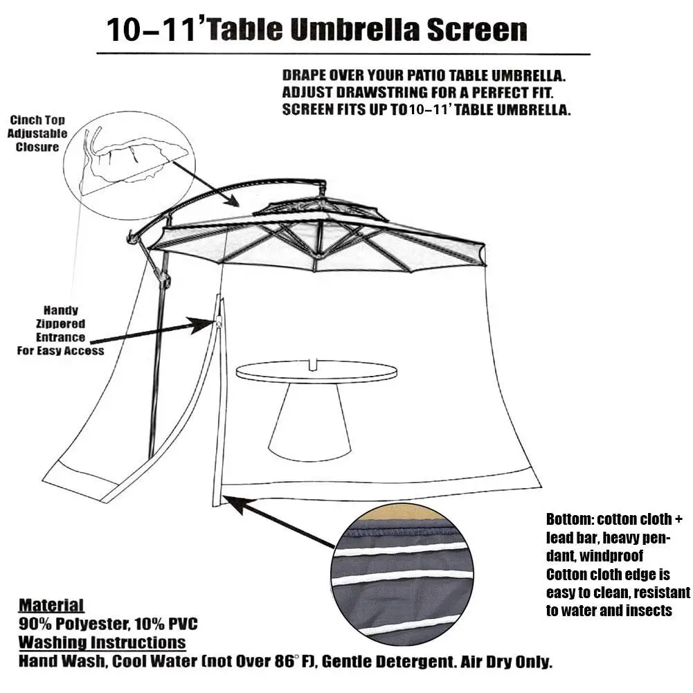 1、Practical Net: This umbrella table screen cover is high-quality 100% polyester fiber, and the monofilament thickness is 75D. It is dense enough to insulate and thin enough to keep your vision, sun-shading function.