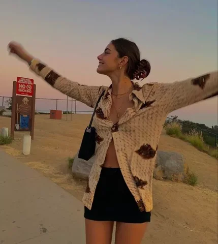 womentops Y2K roupas femininas Vintage Floral Print Crop Top Shirt Y2K Orange Long Sleeve Collared Button Down T Shi