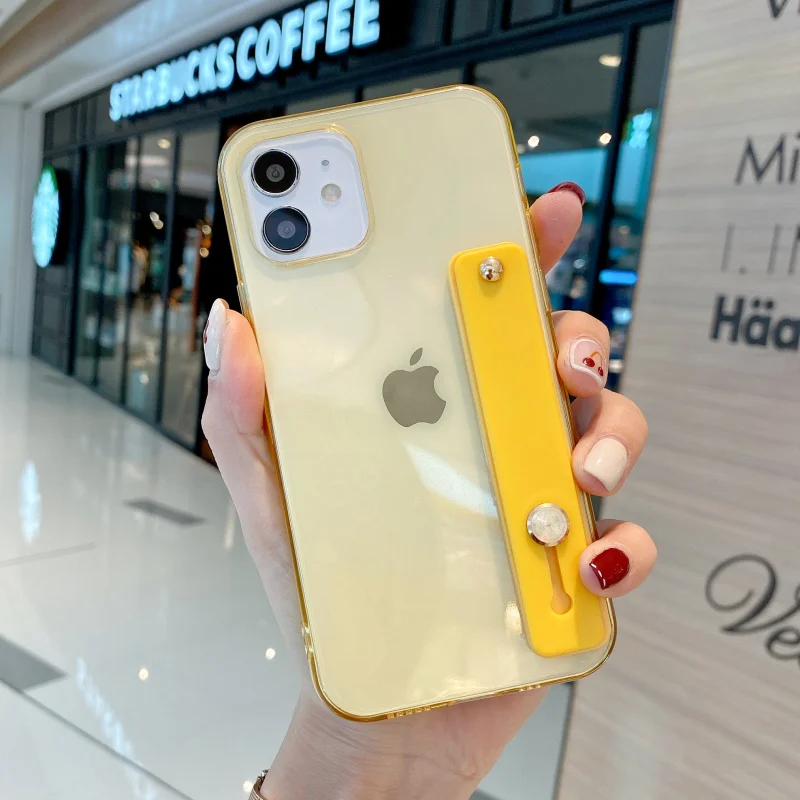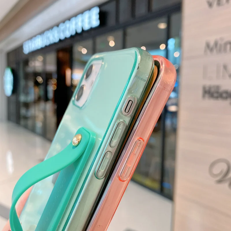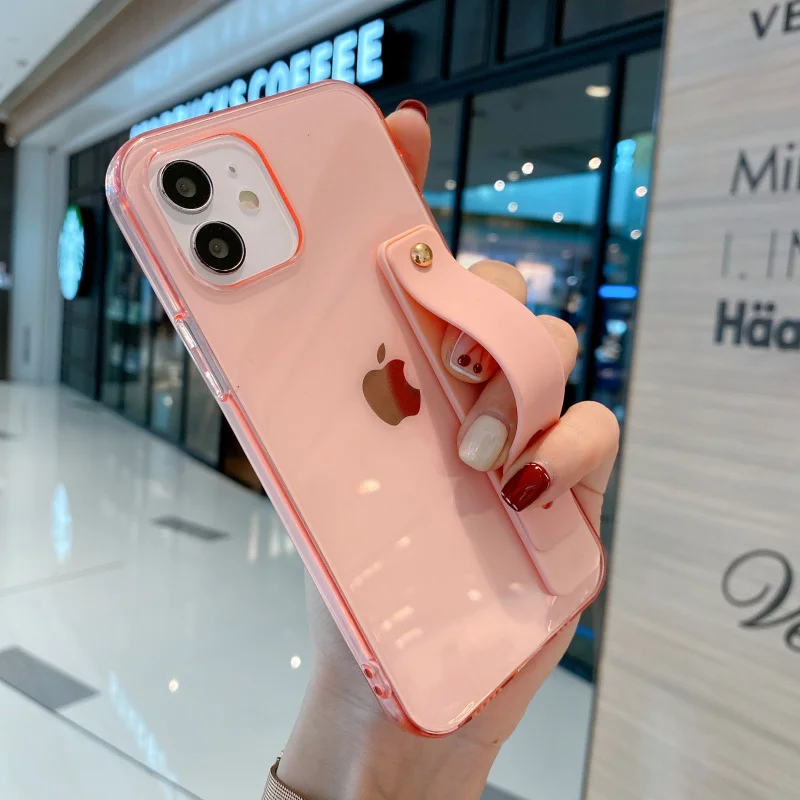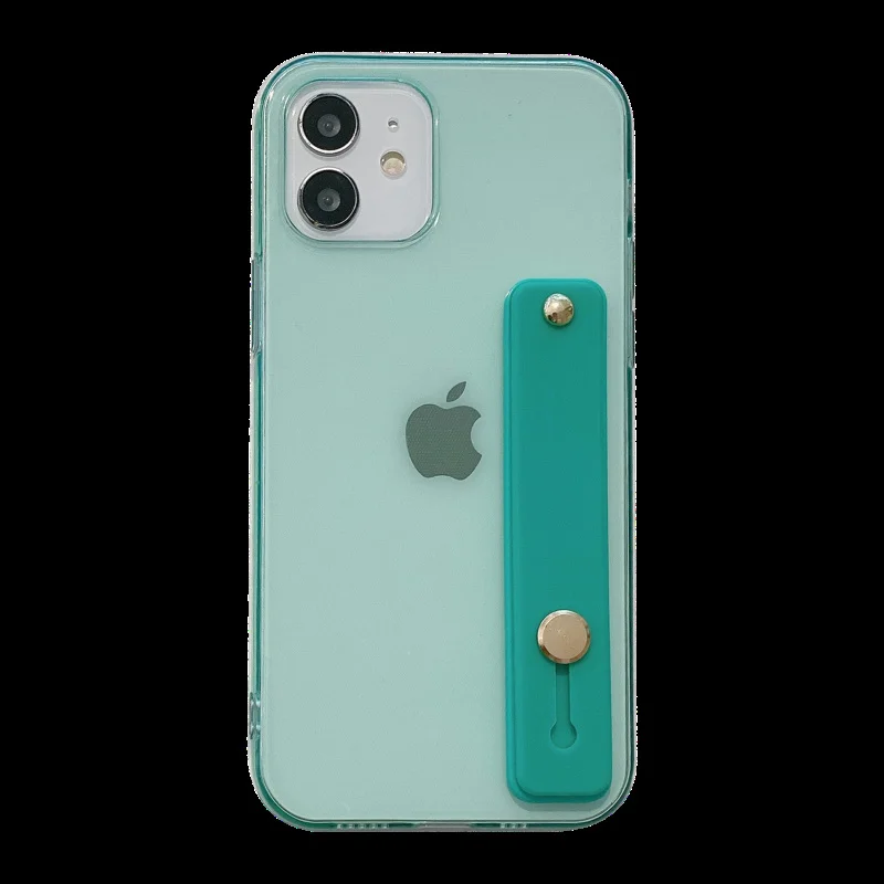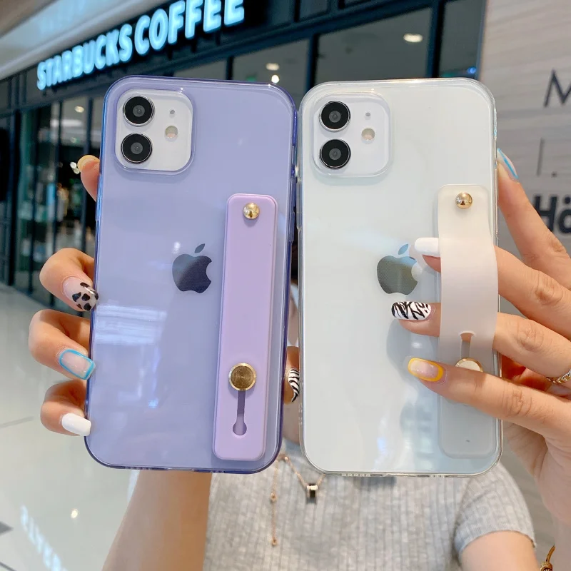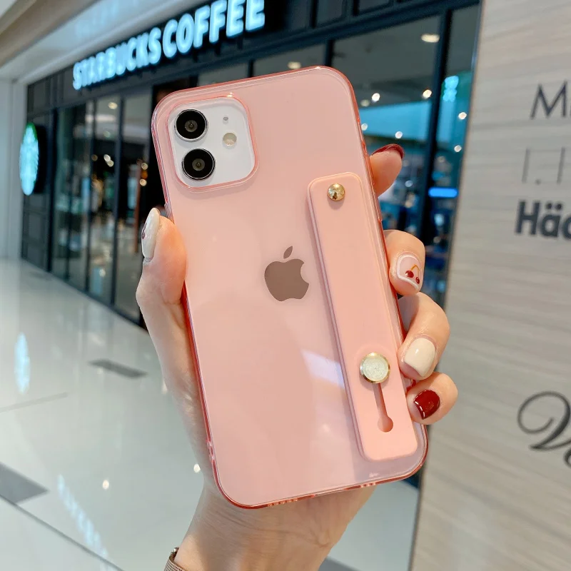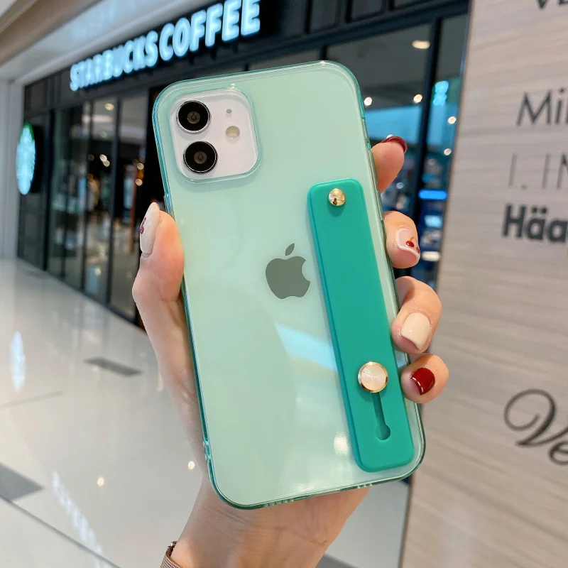 Candy Transparent Wrist Strap Soft Stand Phone Case For Iphone 12 Mini 11 Pro MAX X XR XS SE 7 8 Plus Shockproof Cover