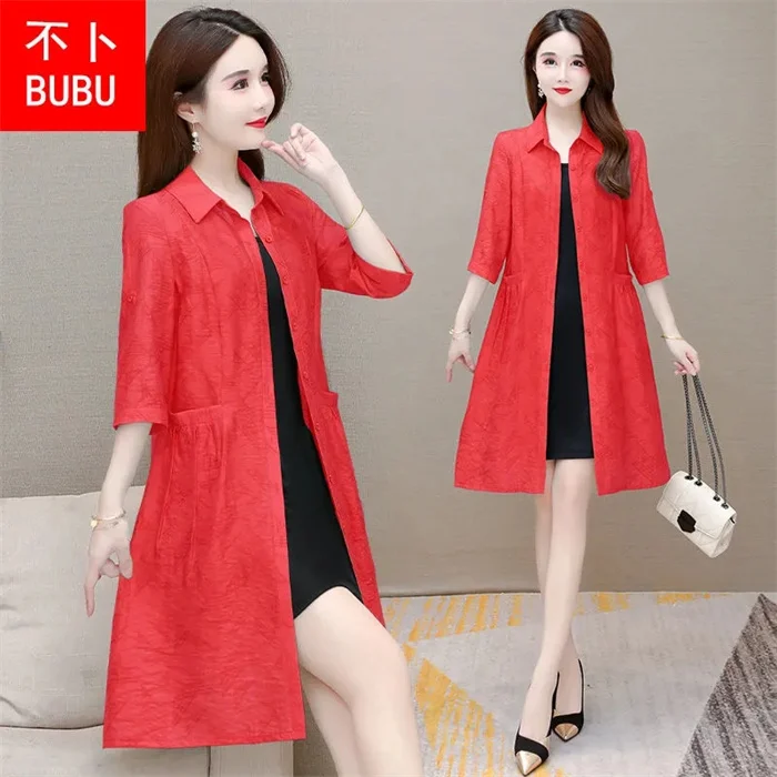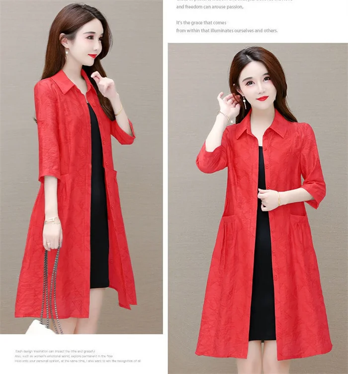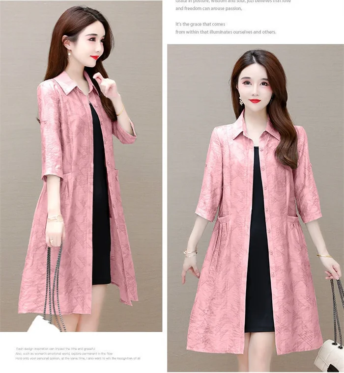 Thin Women's Trench Coat Medium Long 2022 New Loose Single-Breasted Female Fashion Elegant Sun Protection Clothing